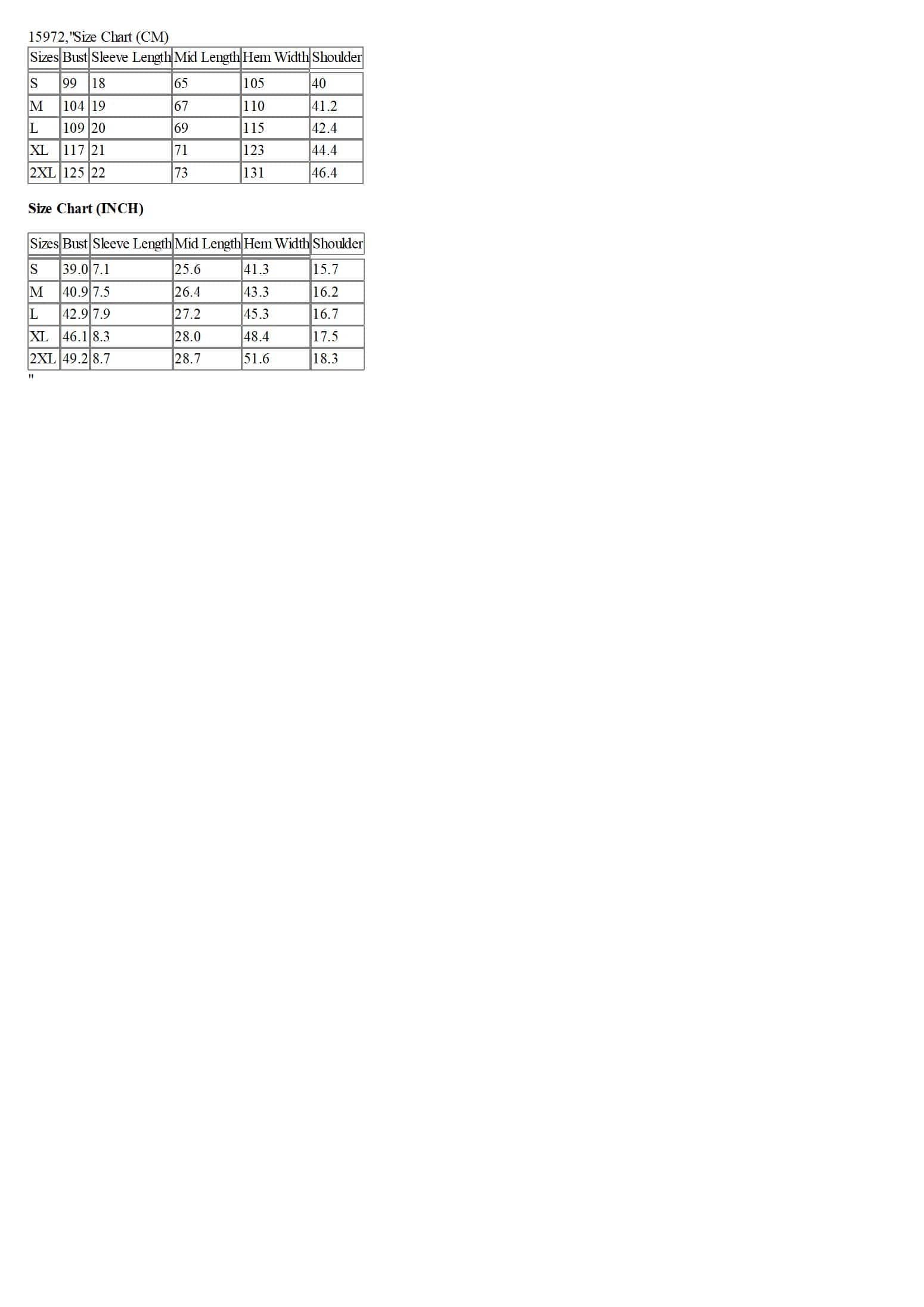 Size Chart (INCH)