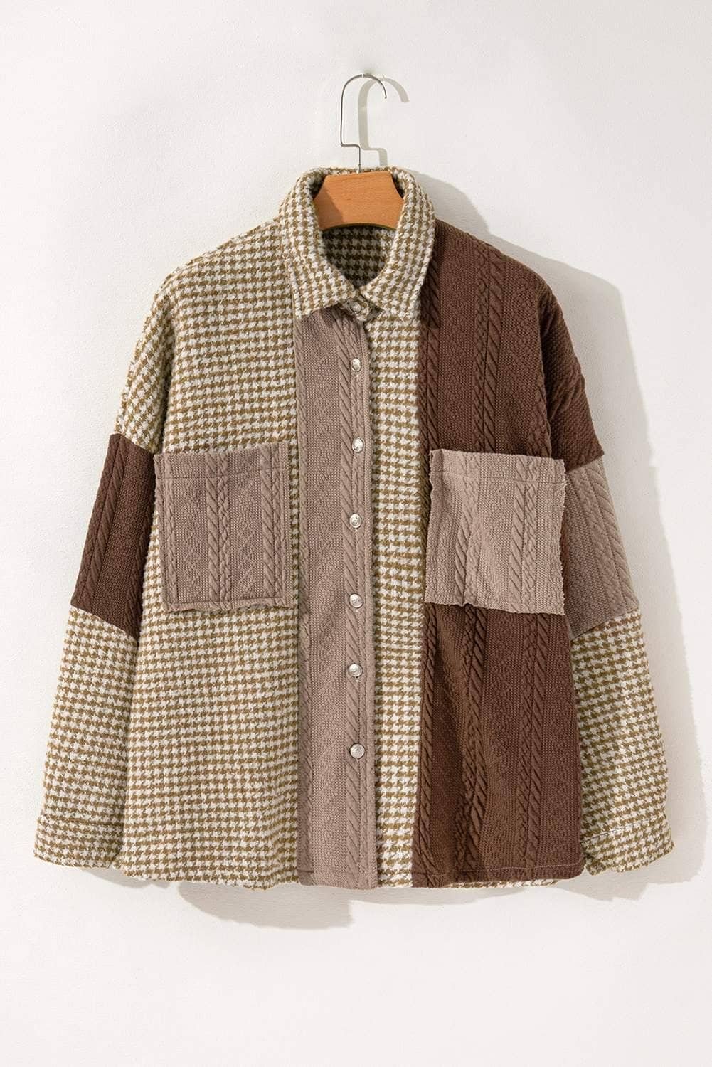 - The loose shacket is a chic fusion of pattern and texture.