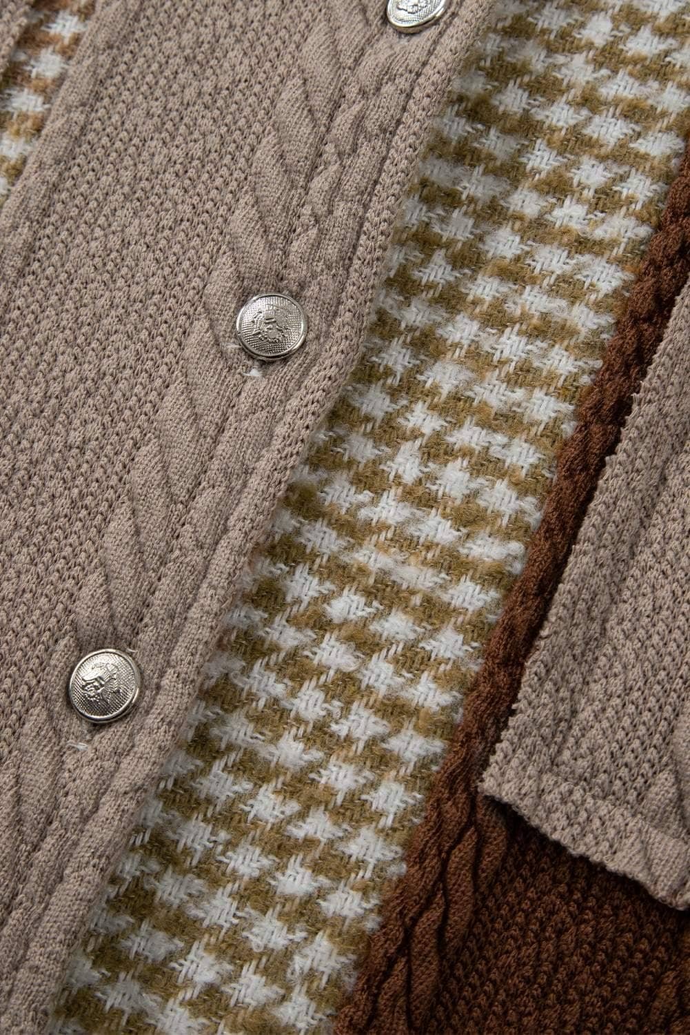 The houndstooth patchwork is given a modern twist with color contrast.
