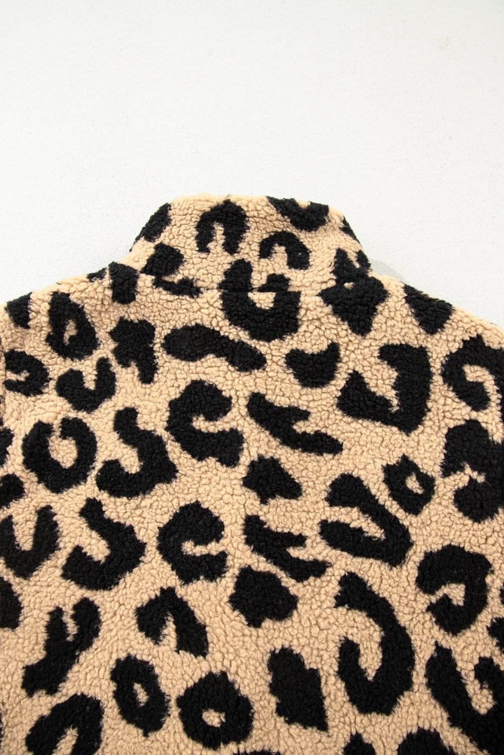 Chic collar detail enhances this must-have leopard sherpa jacket for women.