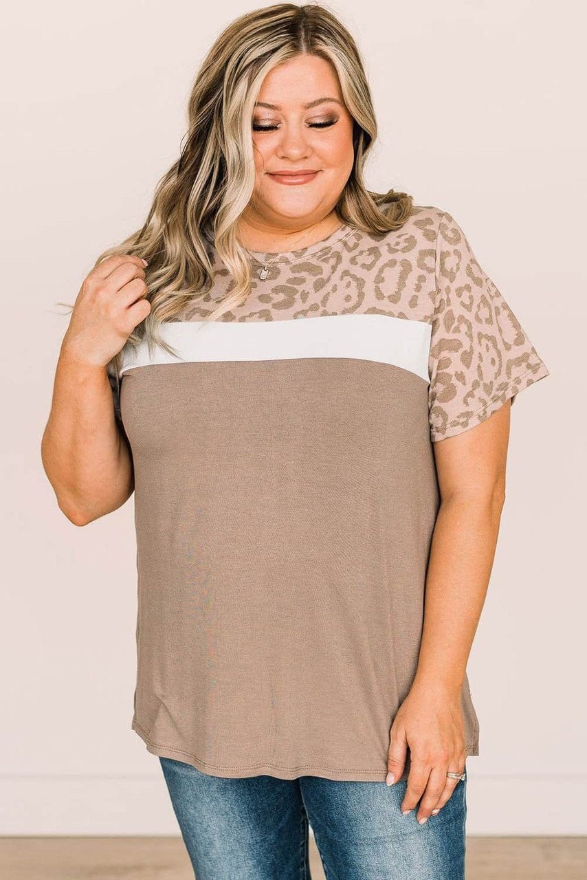 - This plus size tee is outstanding for its fashionable leopard and colorblock splicing design