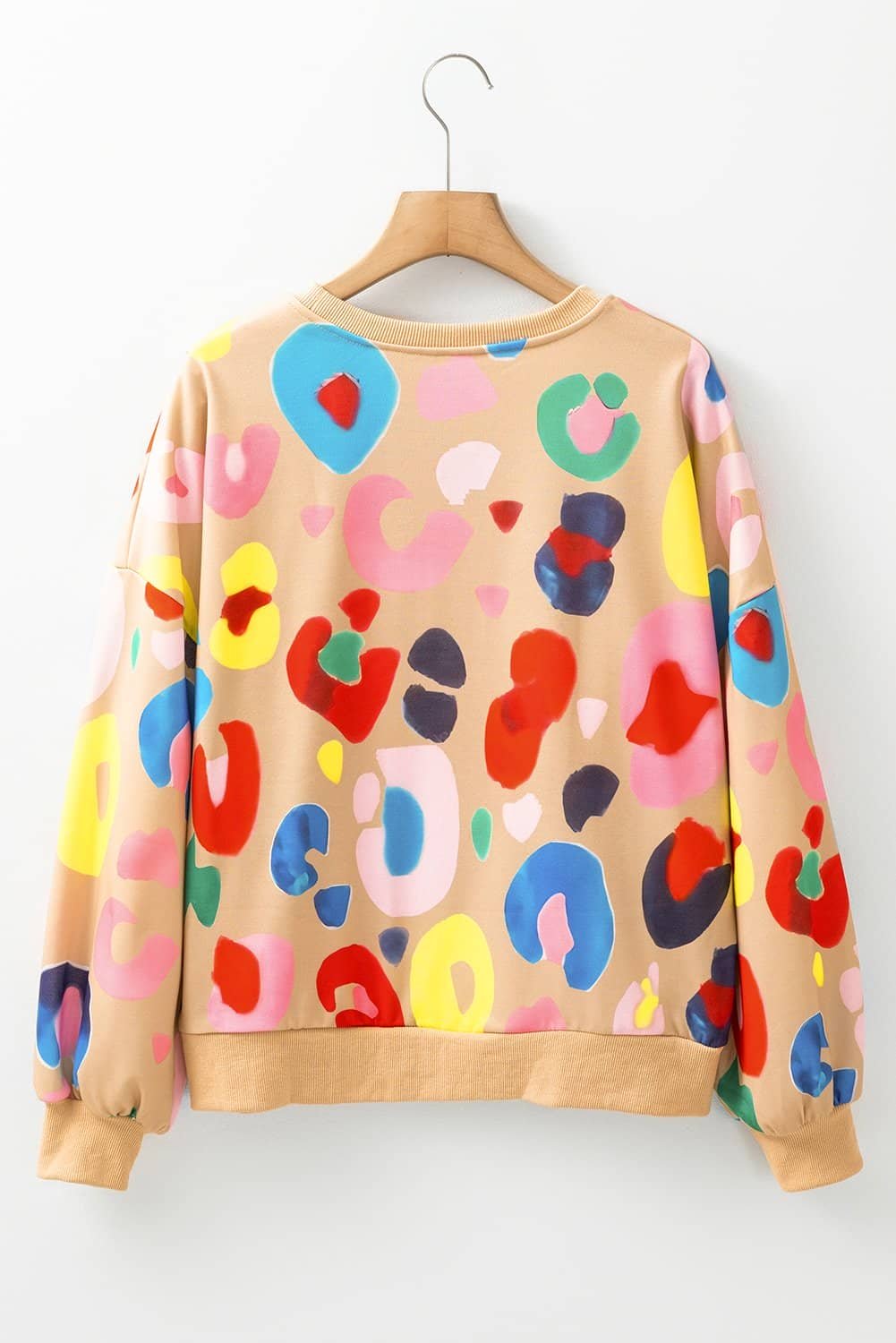 - Stand out with a vibrant multicolor leopard print sweatshirt.