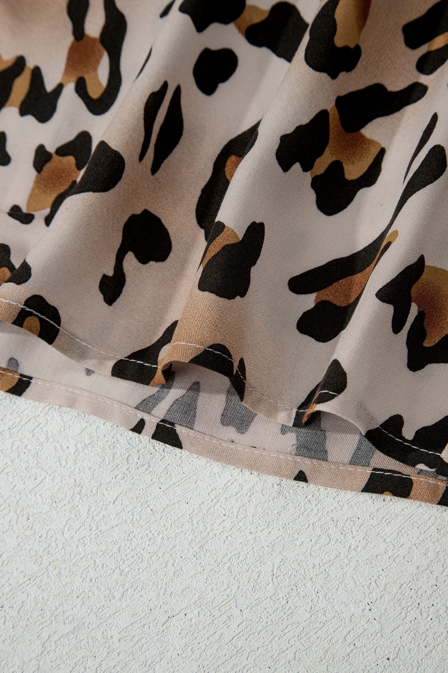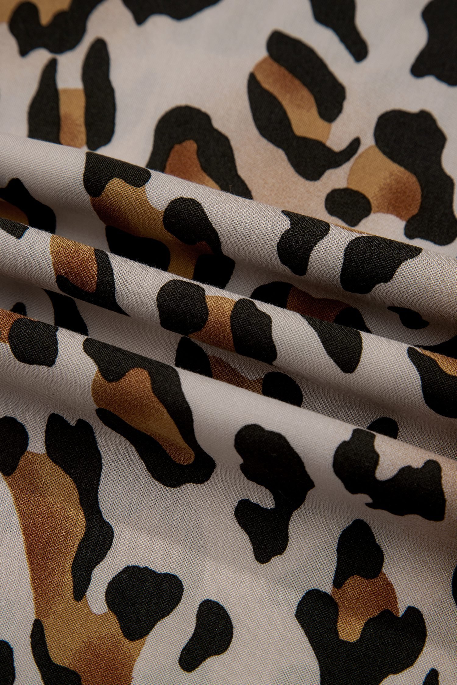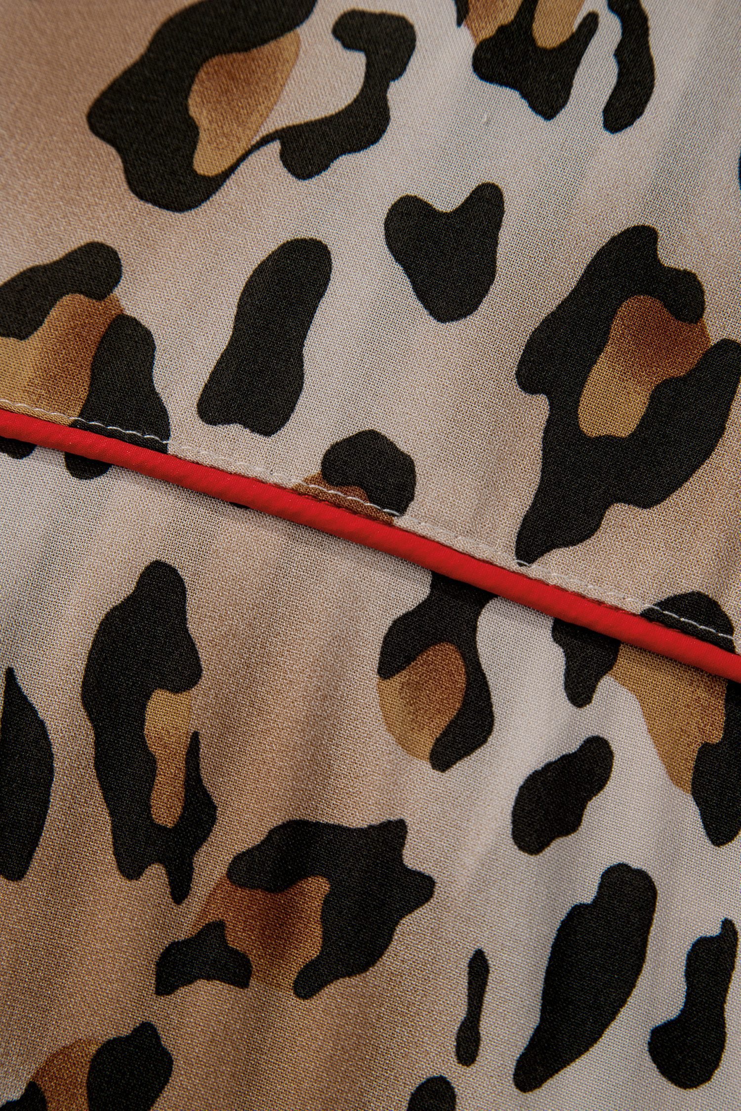 Be the first to review “Khaki Plus Leopard Print Contrast Piping Striped Patchwork 2pcs Long Pajama Set”