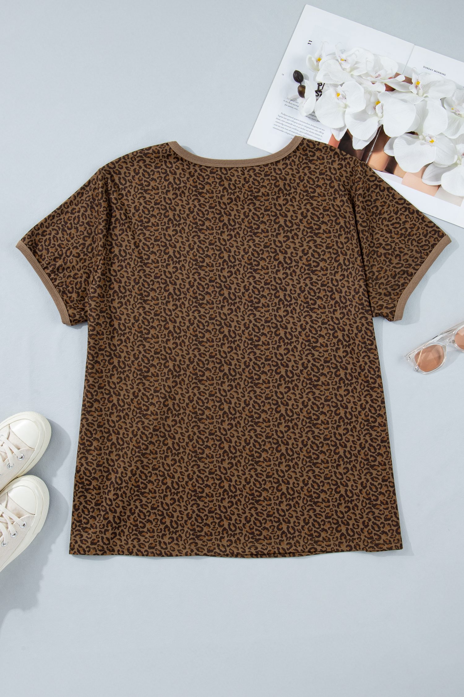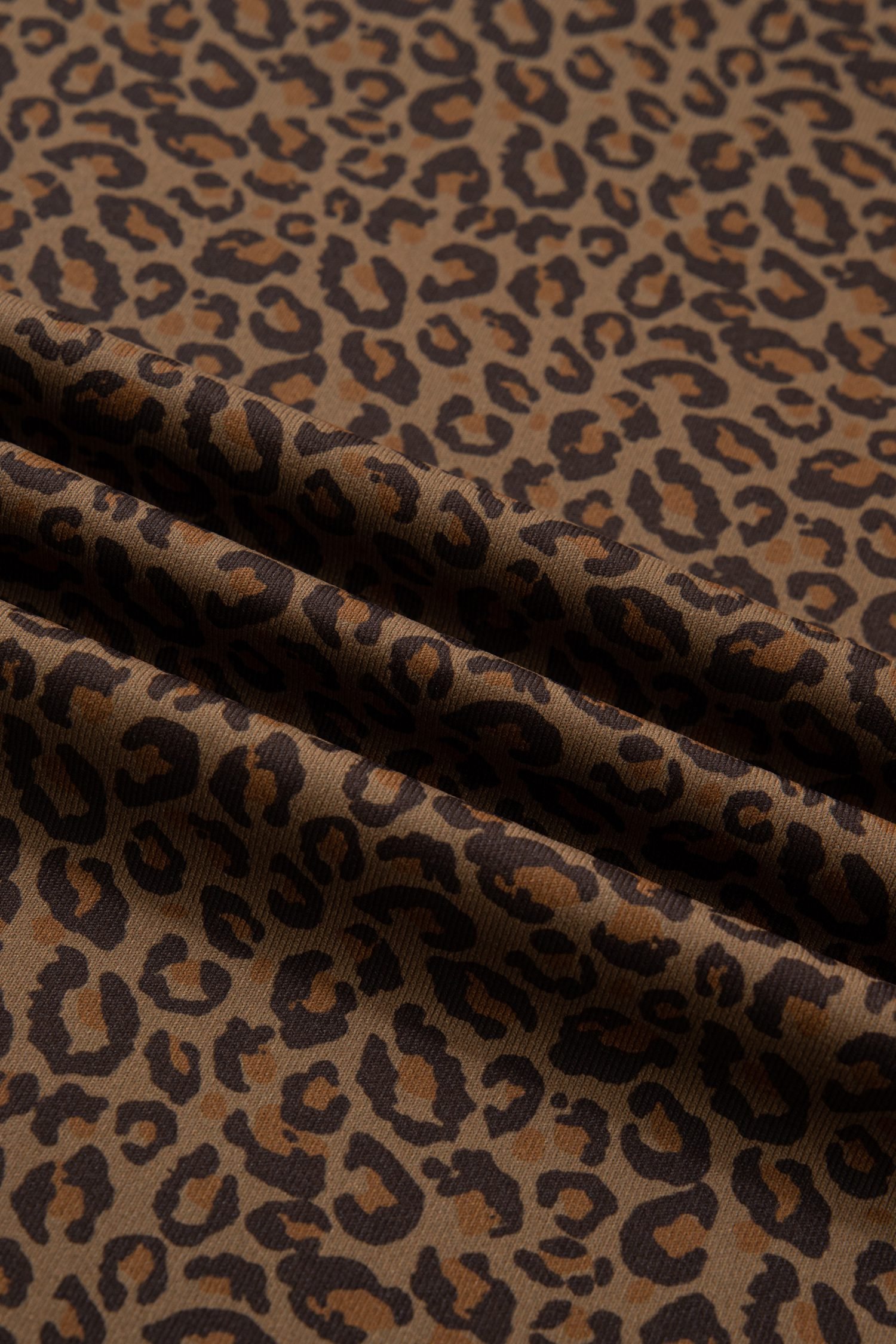Features a striking leopard print with a classic tee silhouette.