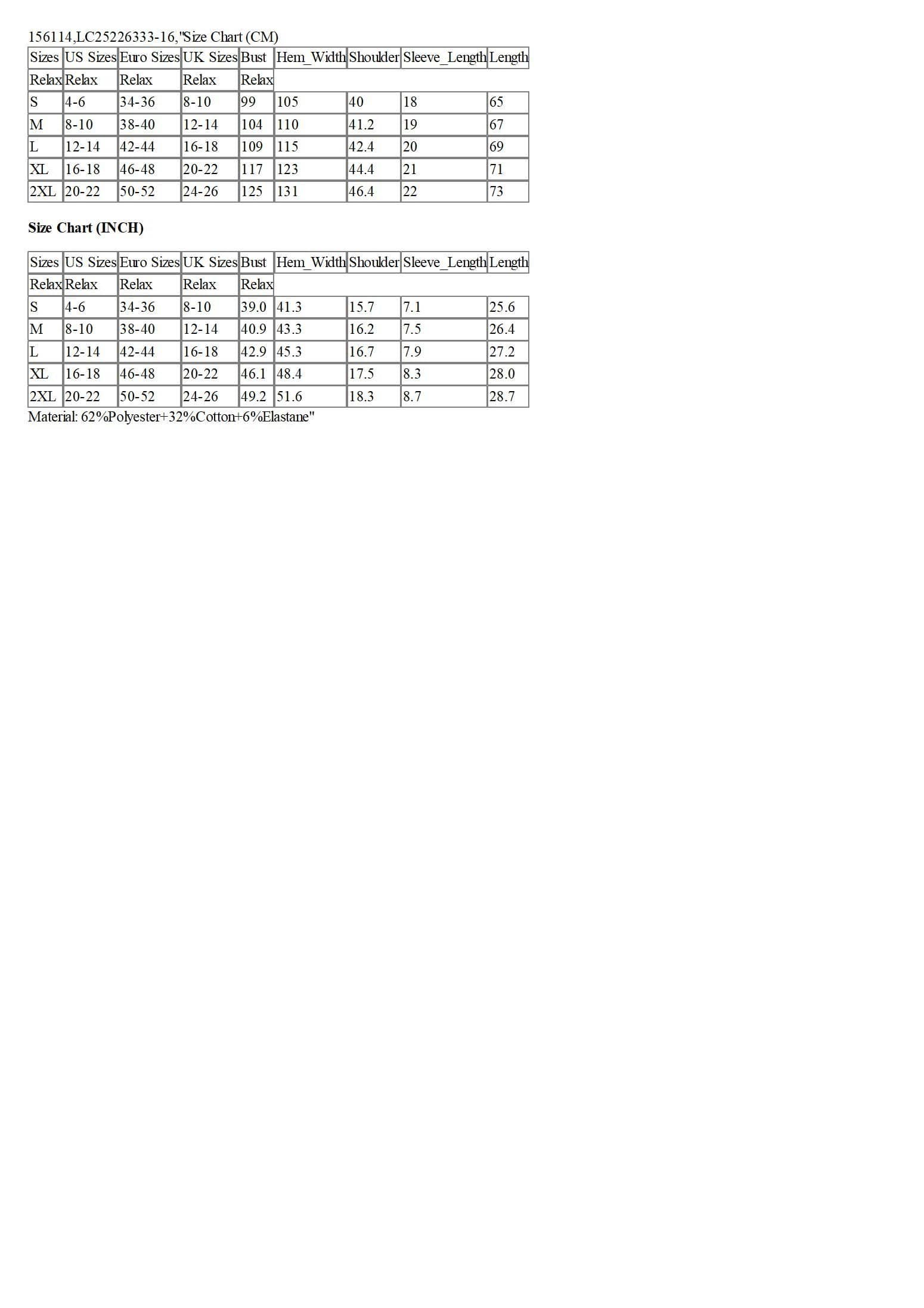 Material: 62%Polyester+32%Cotton+6%Elastane