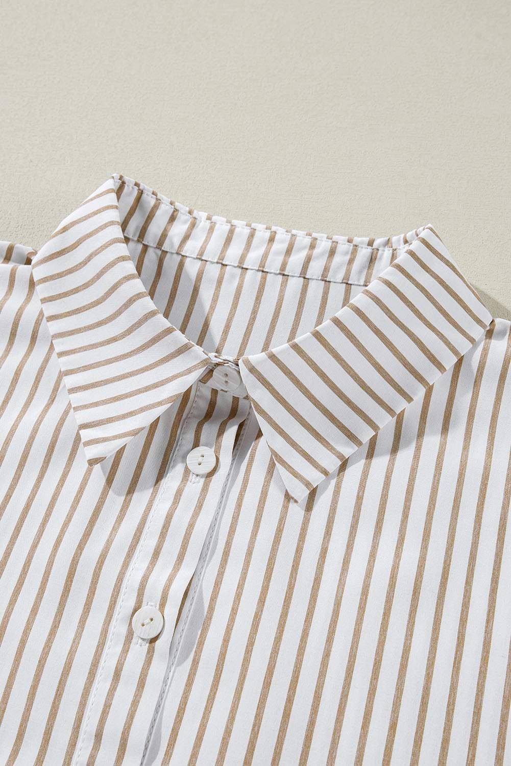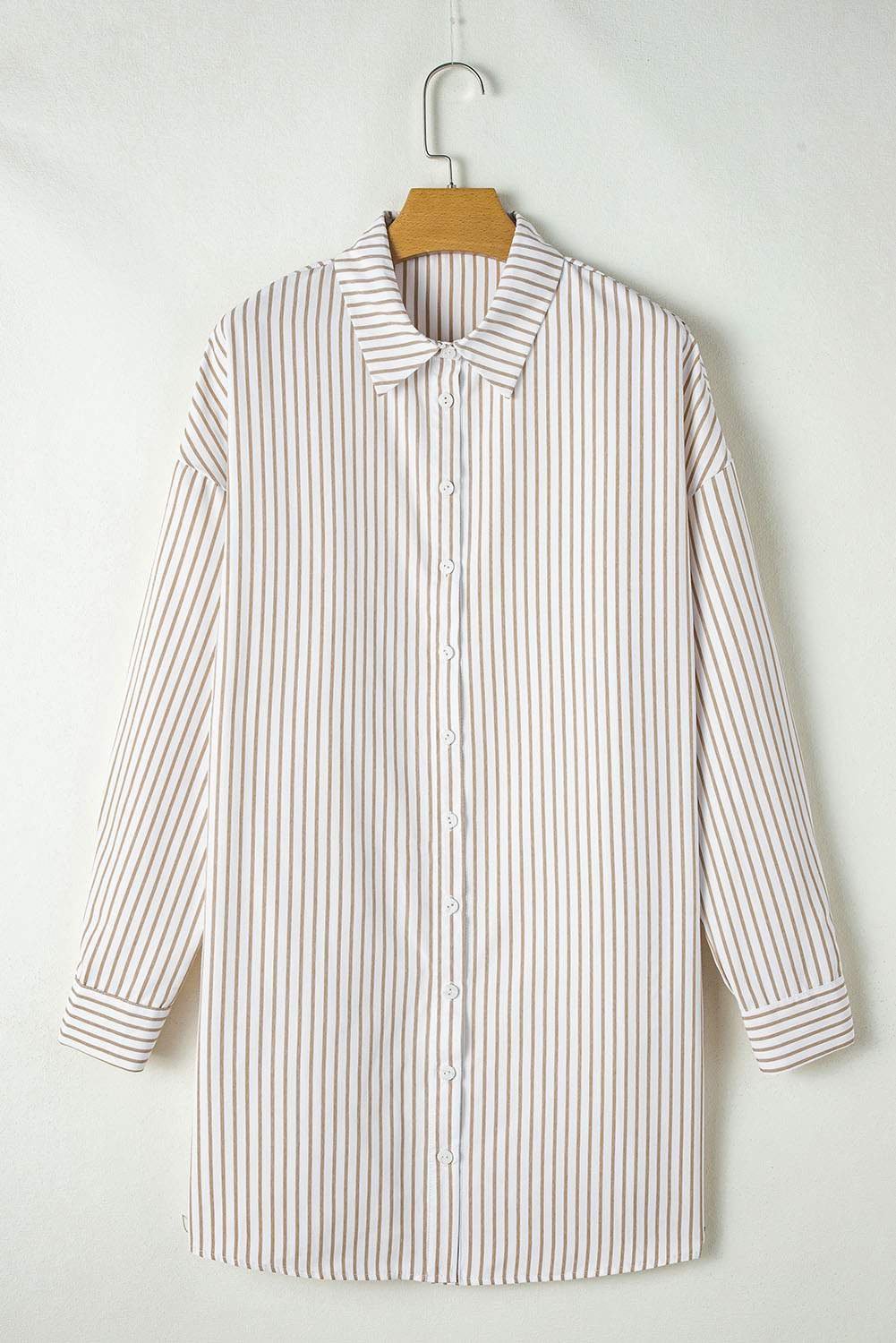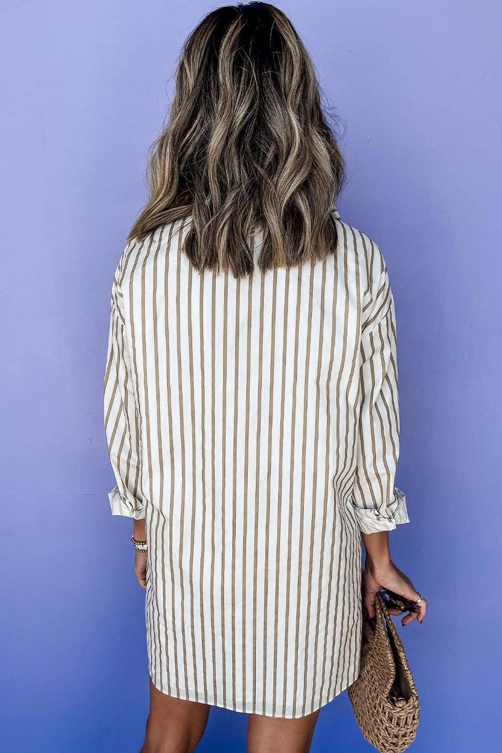 Khaki Stripe Long Sleeve Button Up Mini Shirt Dress