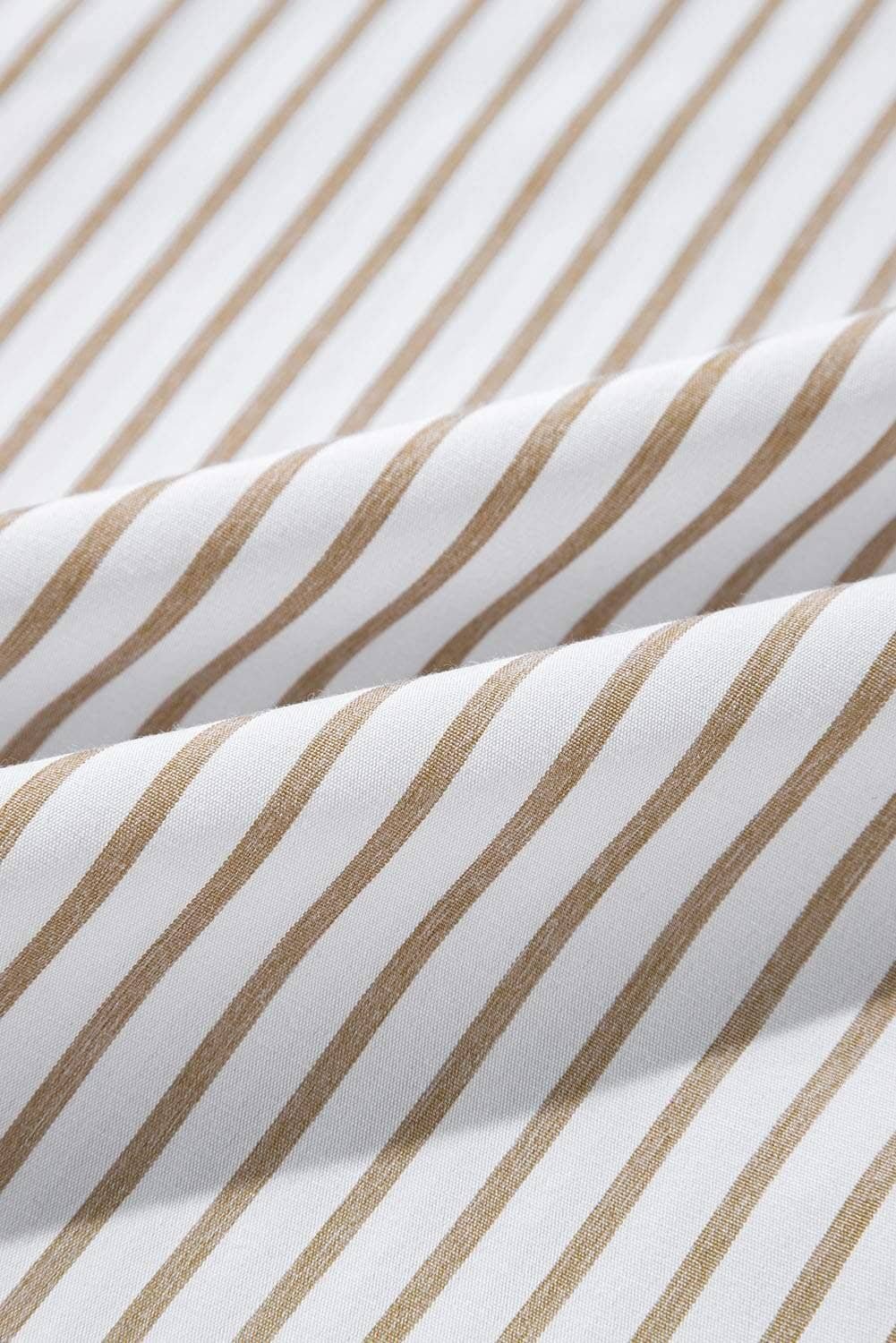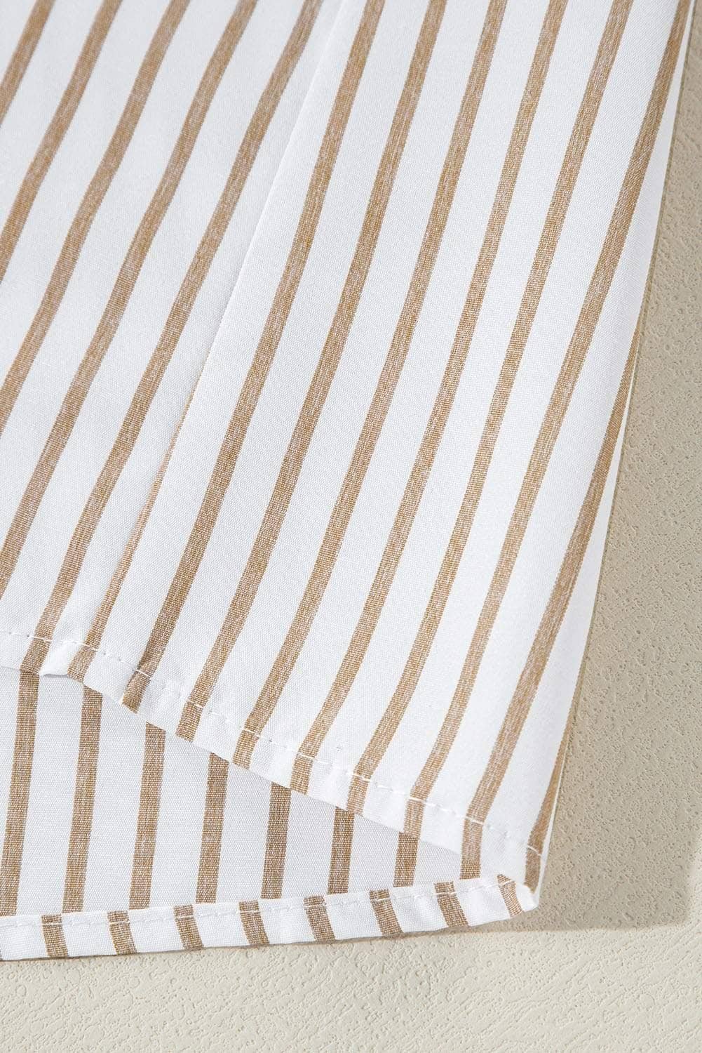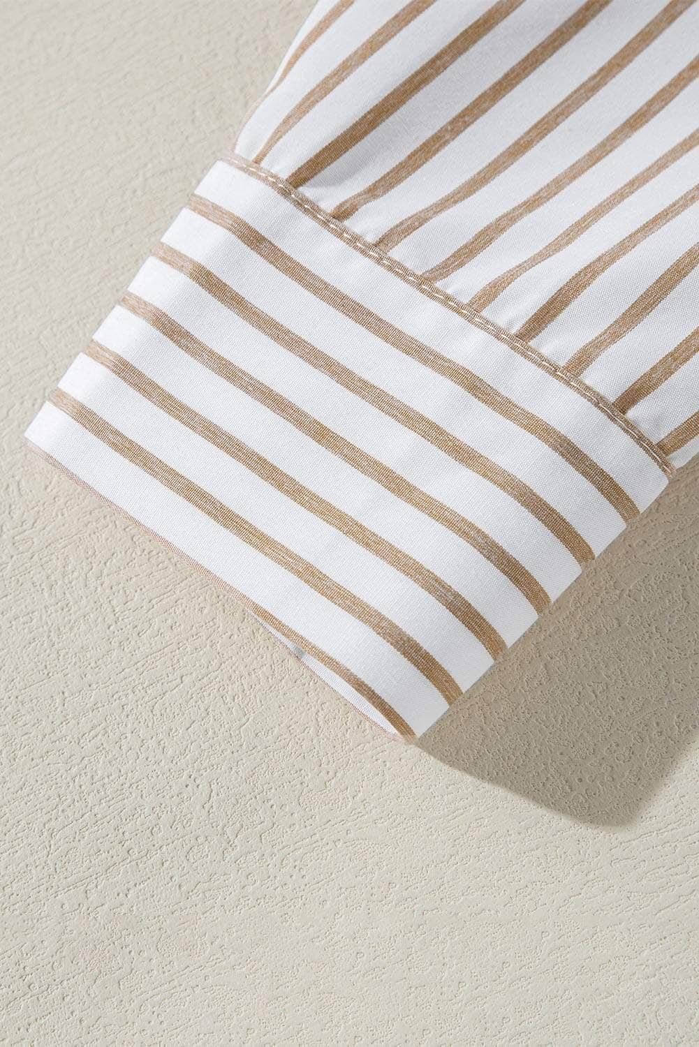 Khaki Stripe Long Sleeve Button Up Mini Shirt Dress