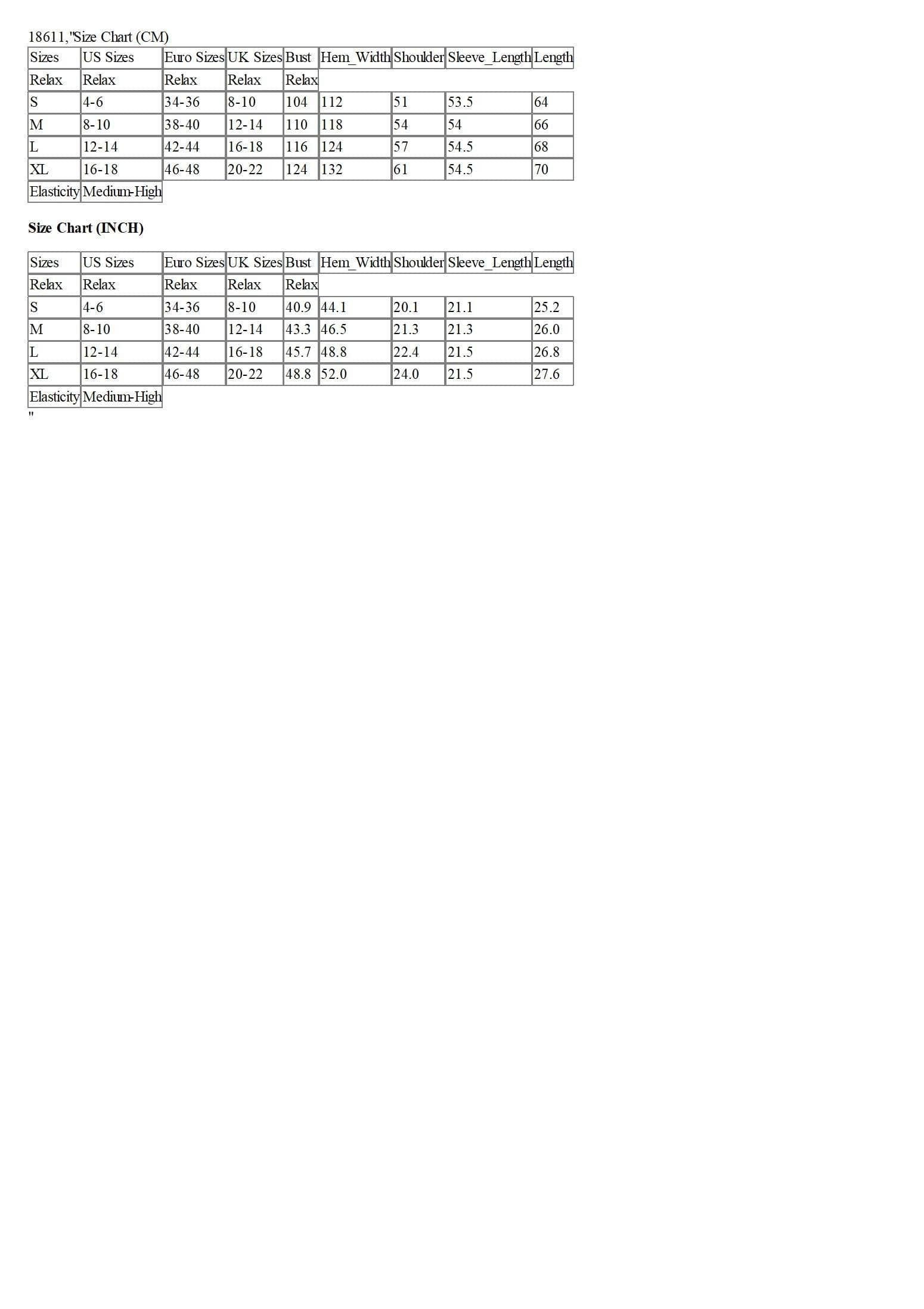 Sizes | US Sizes | Euro Sizes | UK Sizes | Bust | Hem_Width | Shoulder | Sleeve_Length | Length |