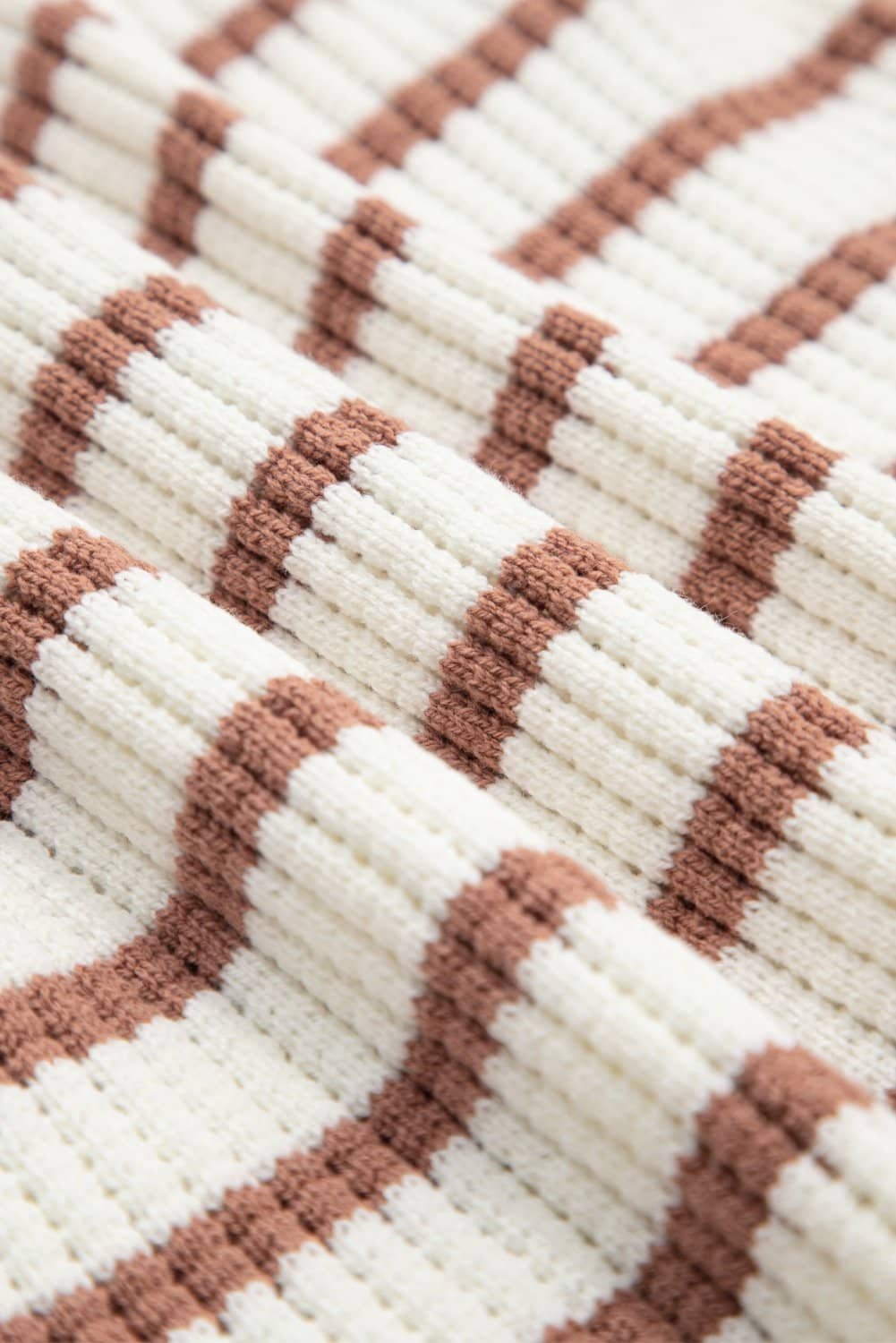 Be the first to review “Khaki Stripe Scalloped Round Neck Short Sleeve Sweater”