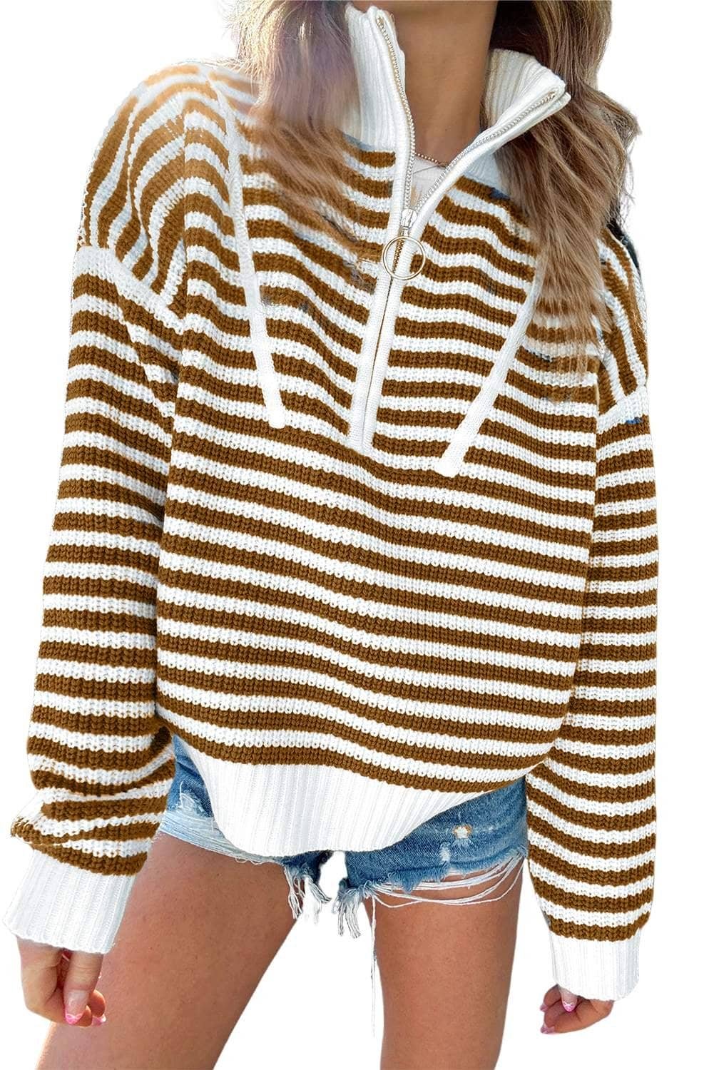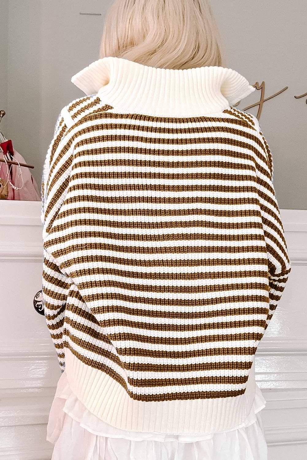 Unique collar enhances the sweater’s modern appeal.