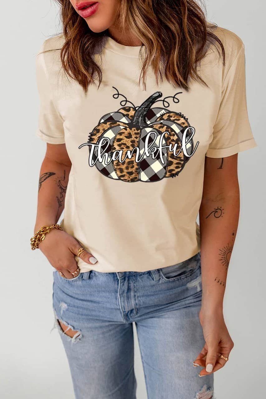 •Thankful Pumpkin Plaid Print Crewneck Graphic Tee