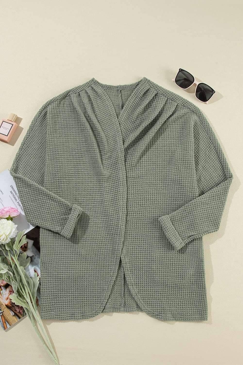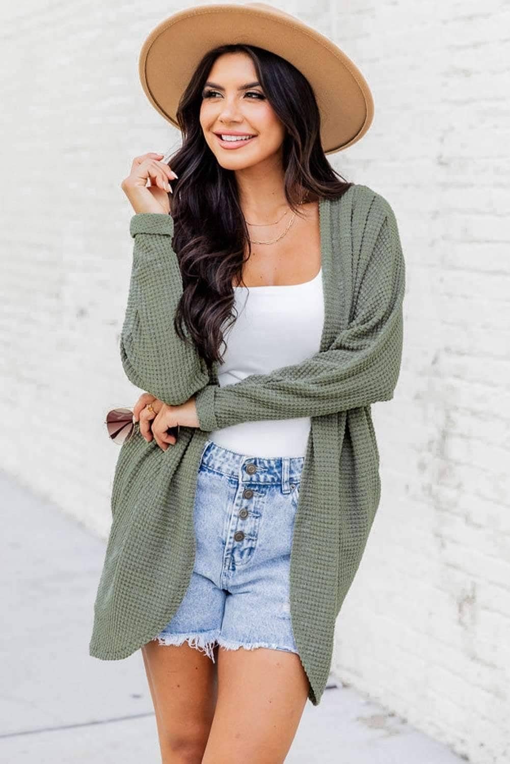 - Soft waffle knit cardigan for a cozy, textured look and feel.