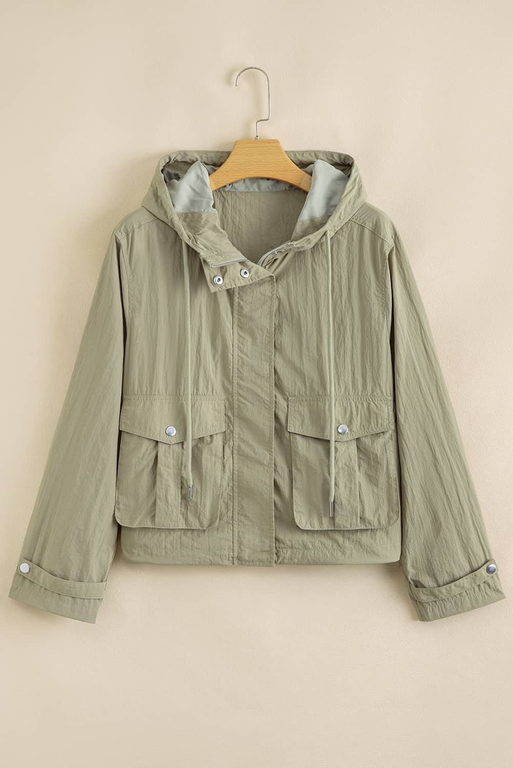 Adjustable hood offers extra coverage for casual outdoor looks.