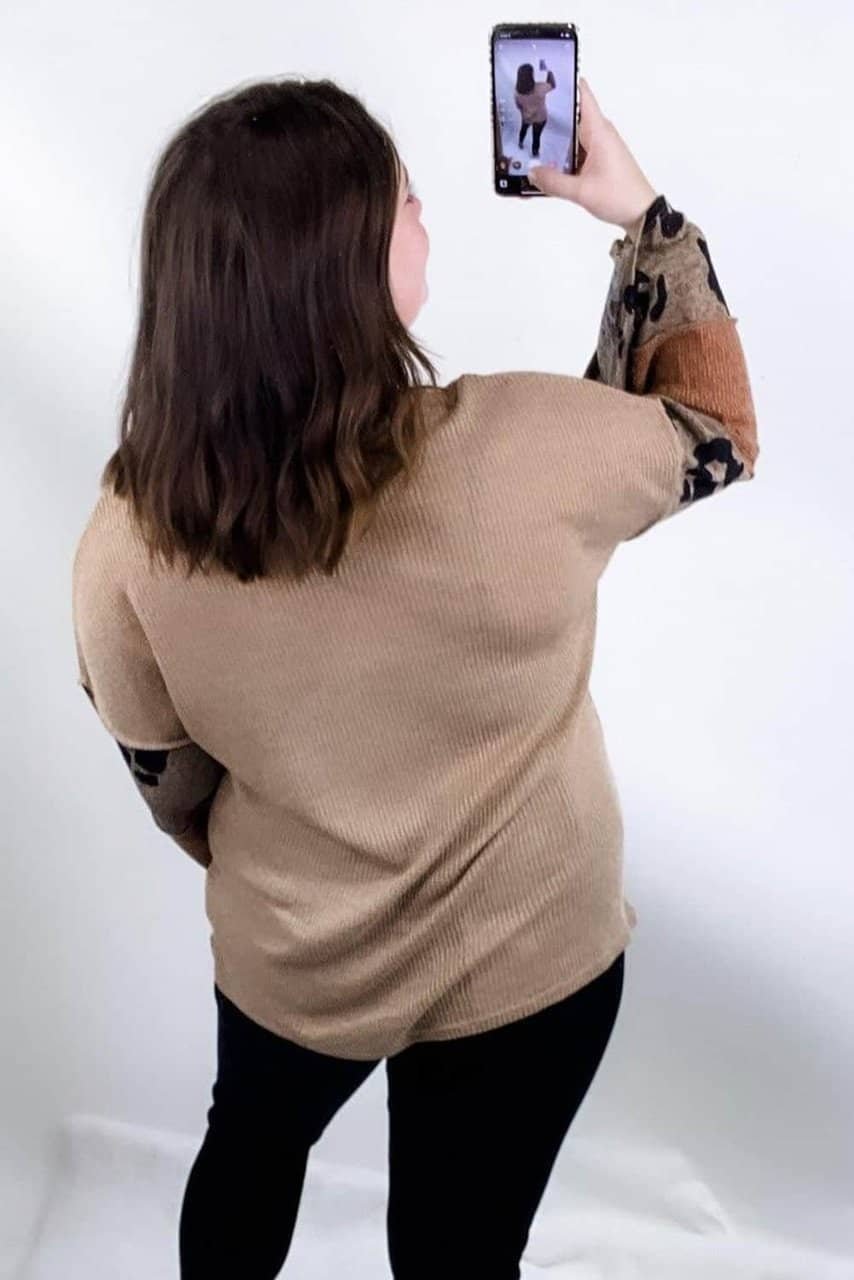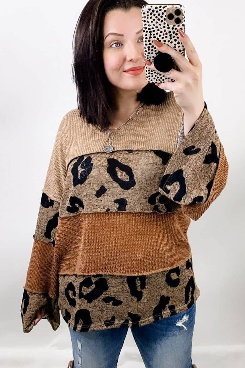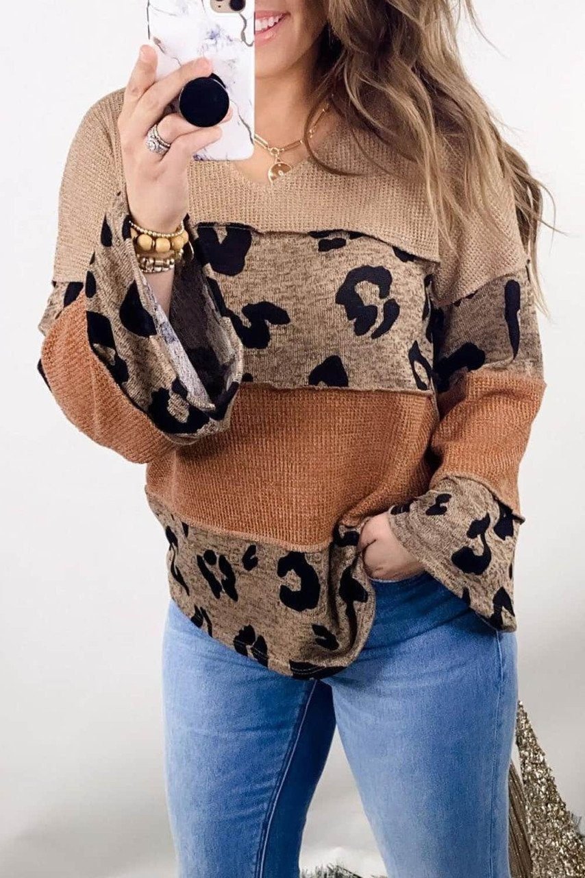 - The leopard patchwork gives a sexy wild touch to this knit top
