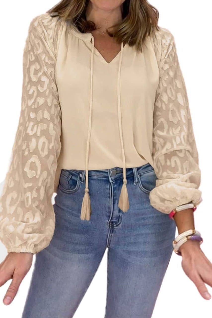 - The leopard texture bubble sleeves design makes this blouse more stylish and eye-catching