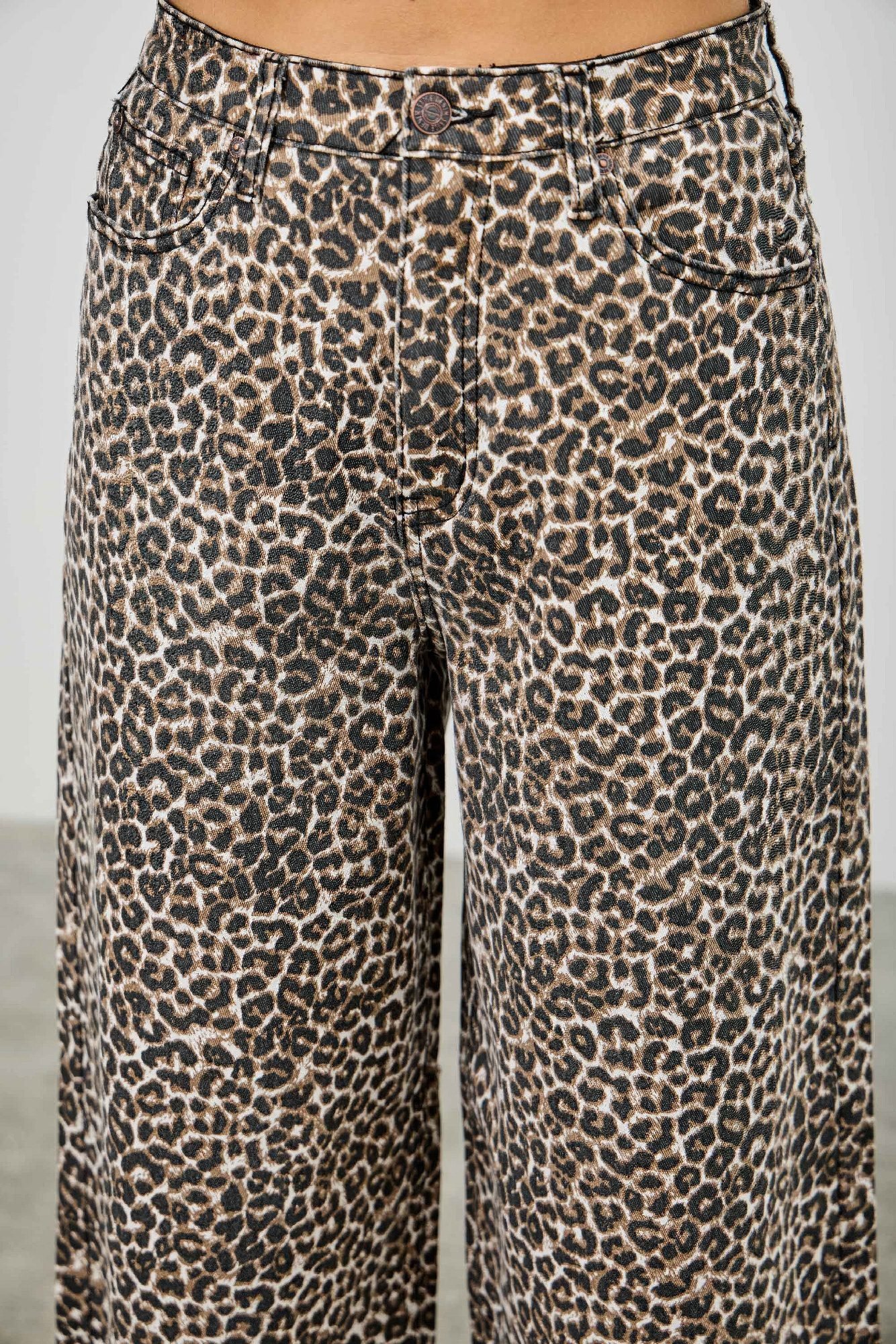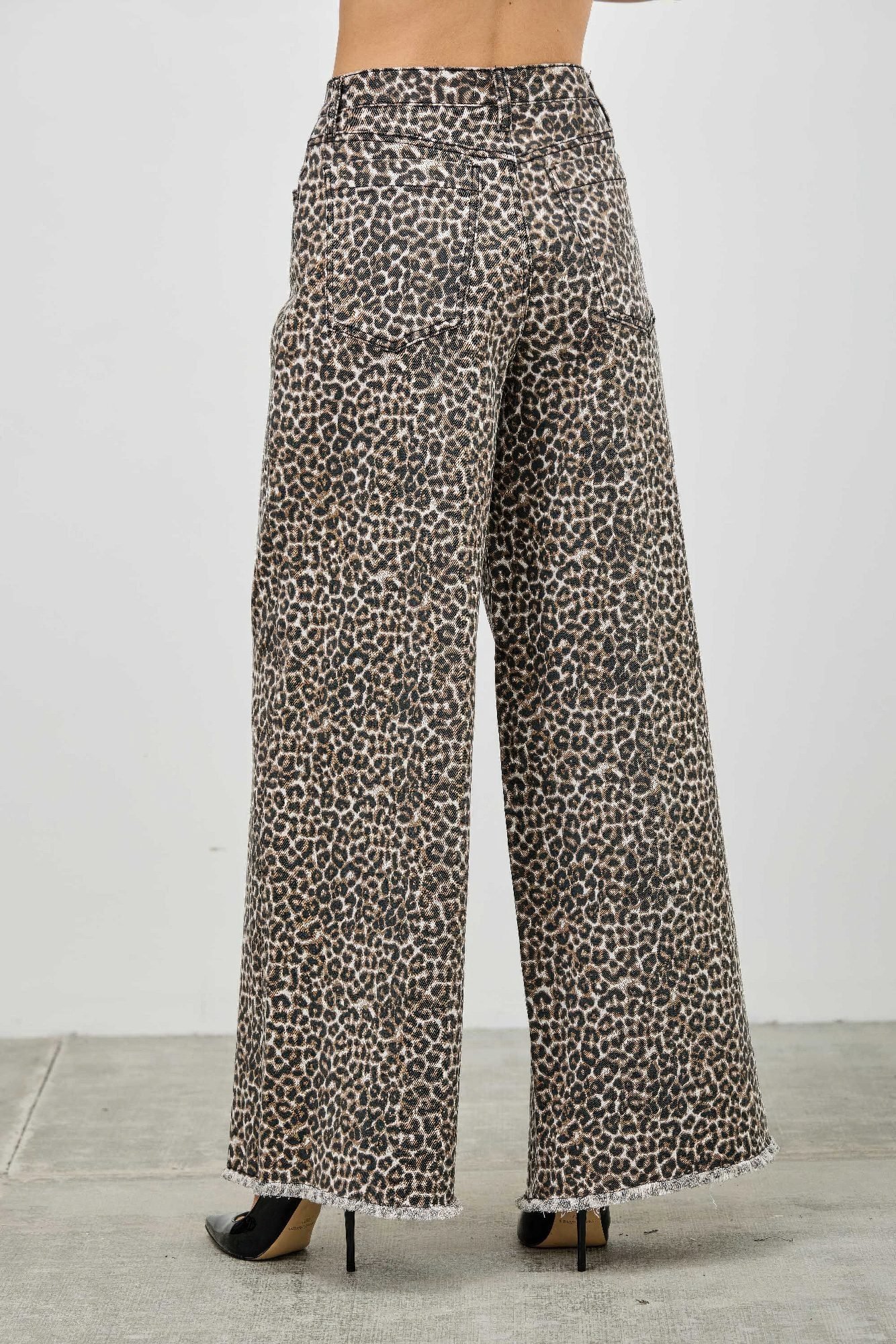 Product Description: Bold and confident, these super high-rise wide-leg jeans in a striking leopard print make a statement with every step. Designed with a flattering ultra-high waist and dramatic wide-leg silhouette, they create a long, lean look while delivering standout style. Crafted from a soft, stretch-infused fabric blend, they offer comfort and flexibility without compromising structure. The allover leopard pattern adds a playful, fashion-forward edge to your denim rotation. Pair them with a simple top to let the print shine or go all in with layered textures for a bold look. Product Details: 98% Cotton, 5.4% Polyester, 2% Spandex Super high-rise waist for a flattering fit Wide-leg silhouette with full-length coverage Allover leopard print for bold, standout style Stretch fabric offers comfort and shape retention Ideal for statement styling or elevated casual looks Size Guide: For accurate sizing guidance, please review our size chart available on the website. Shipping and Returns: Fast Shipping: We offer speedy delivery to your doorstep. Hassle-Free Returns: If you’re not completely satisfied, our flexible return policy ensures your peace of mind.