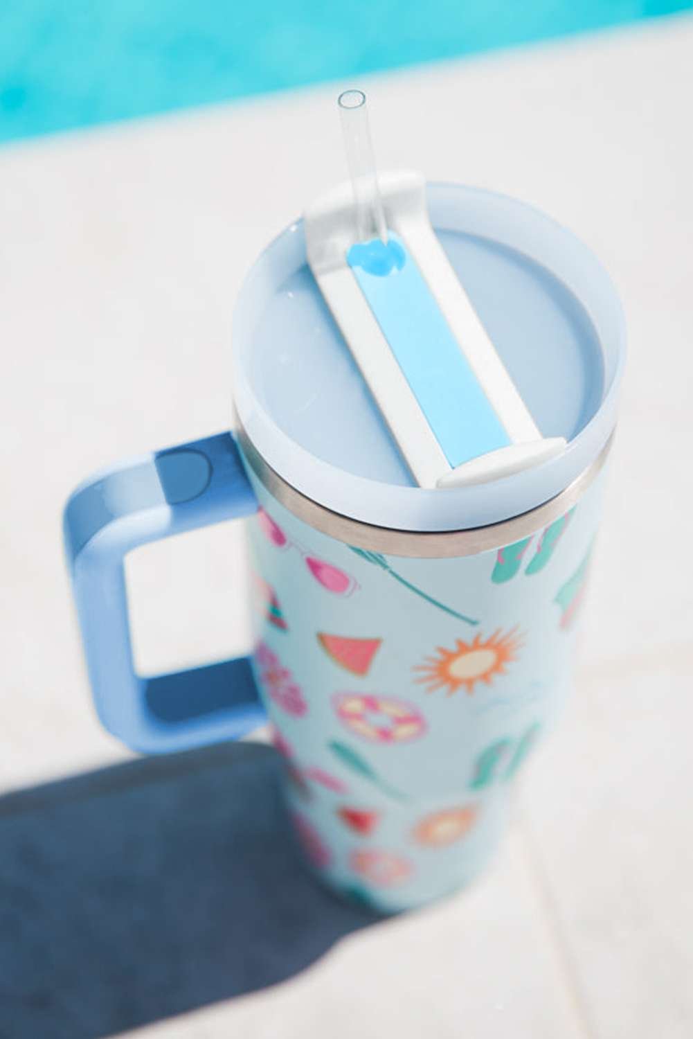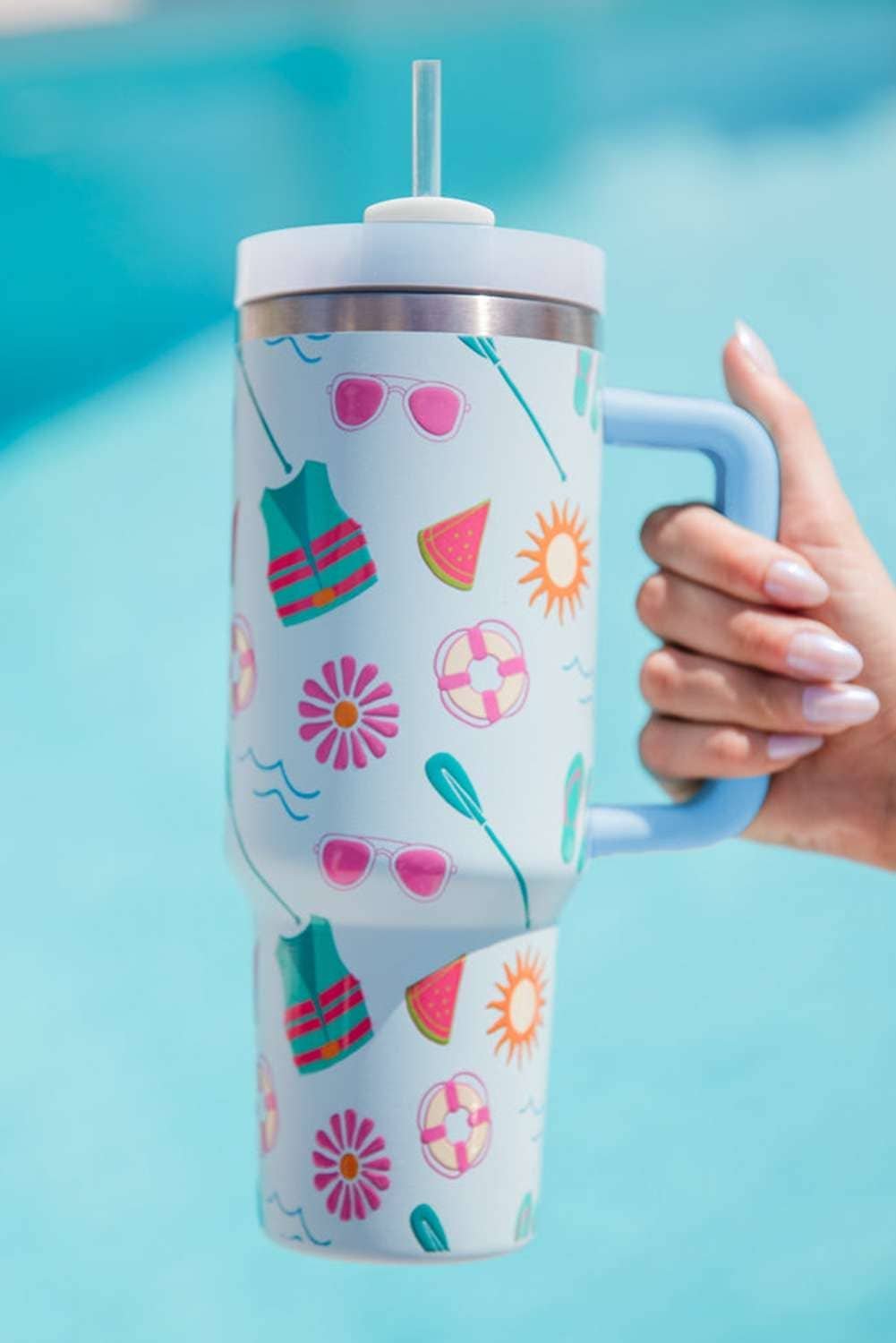 Light Blue Beach Day Fun Pattern Cup With Handle 40Oz