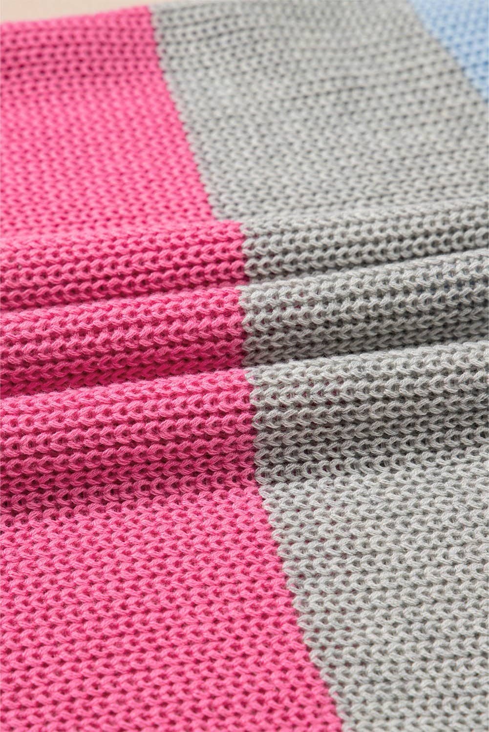 Be the first to review “Light Blue Color Block Notch V Neck Sweater T Shirt”