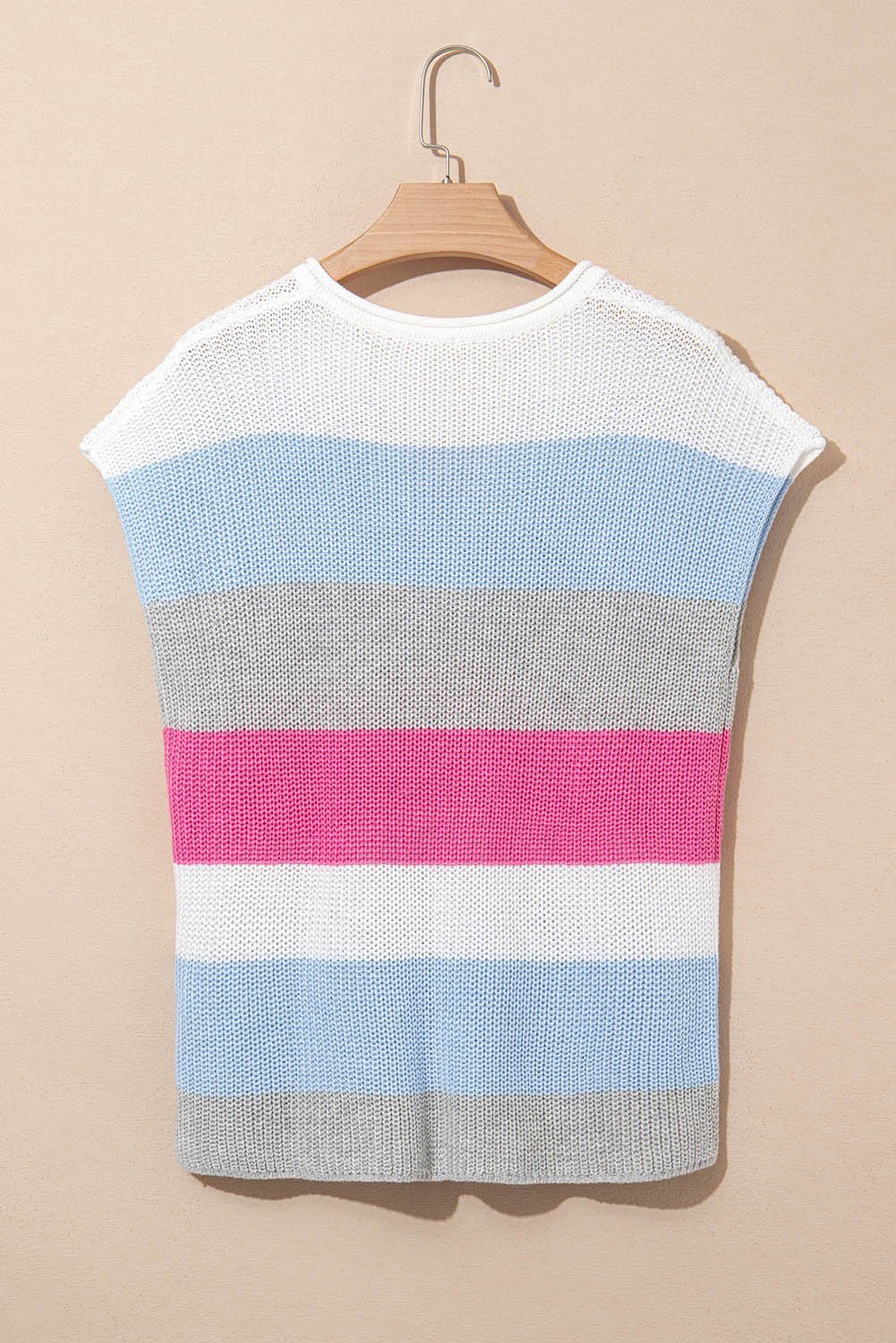 • This knitted t shirt is eye-catching with color block design.