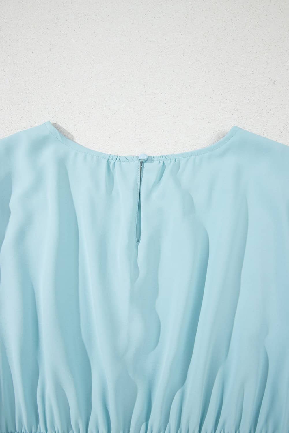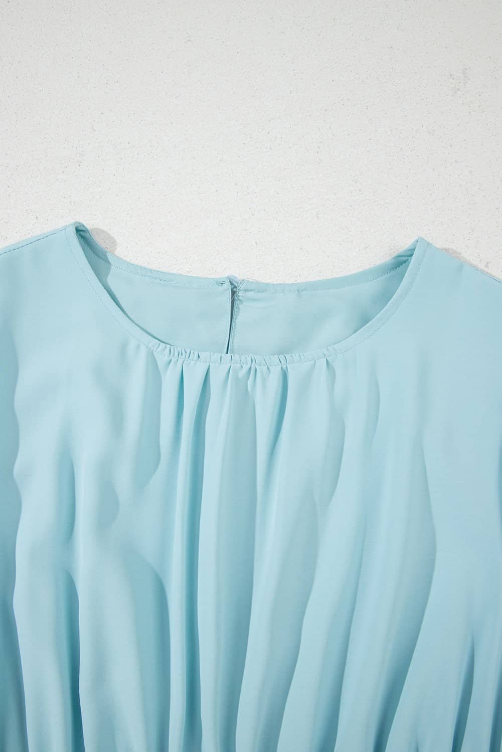 Be the first to review “Light Blue Puff Sleeve Pleated High Waist Flowy Midi Dress”