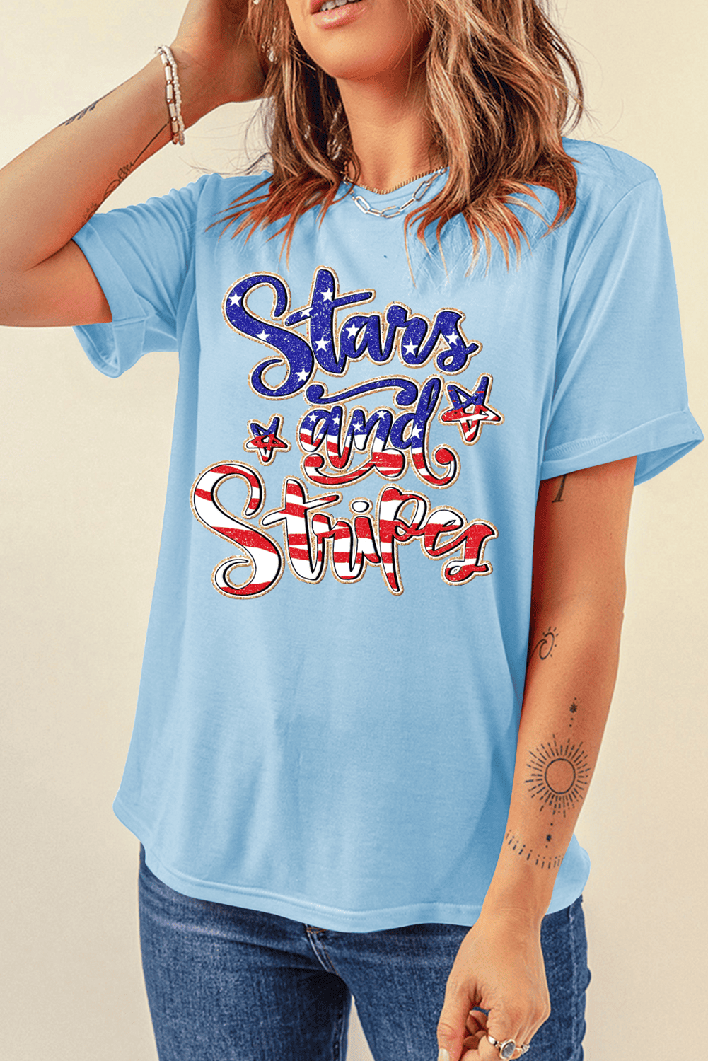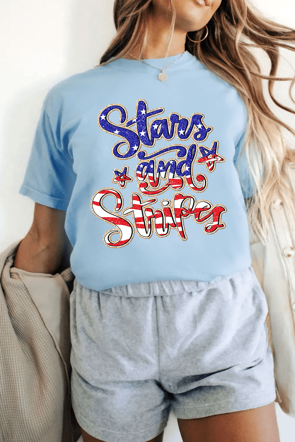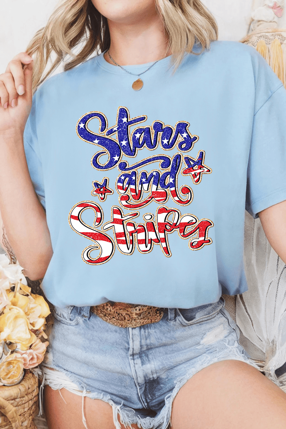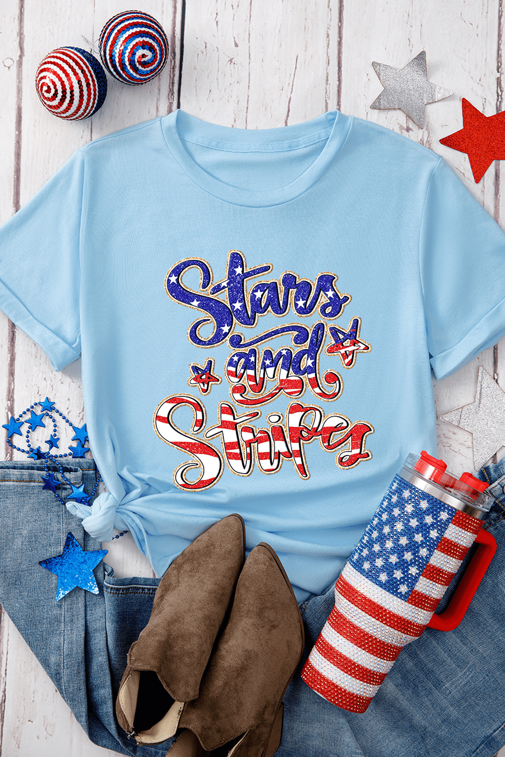 Bold Stars and Stripes graphic for a festive touch.