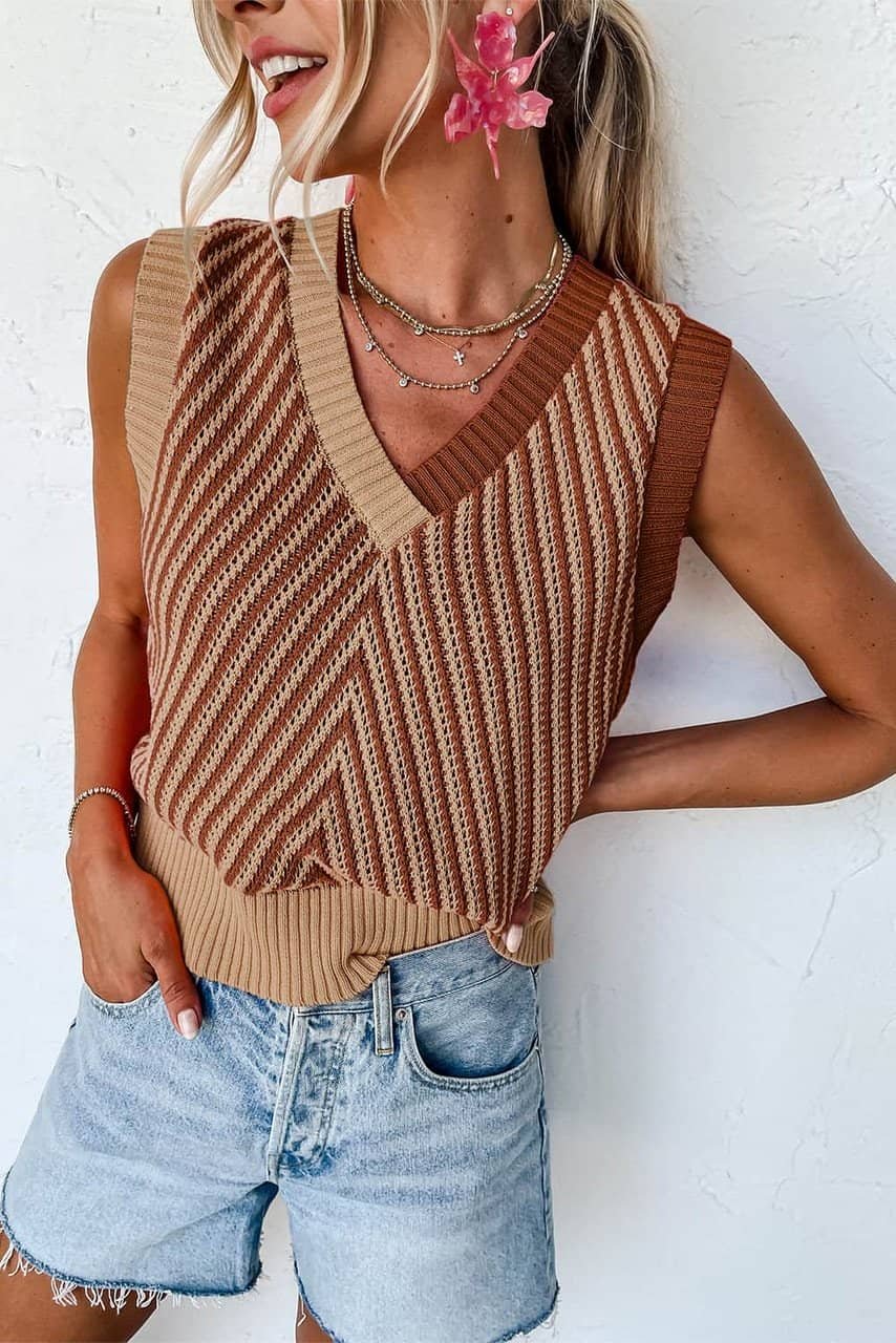 - This sweater tank is stylish with chevron stripes silhouette