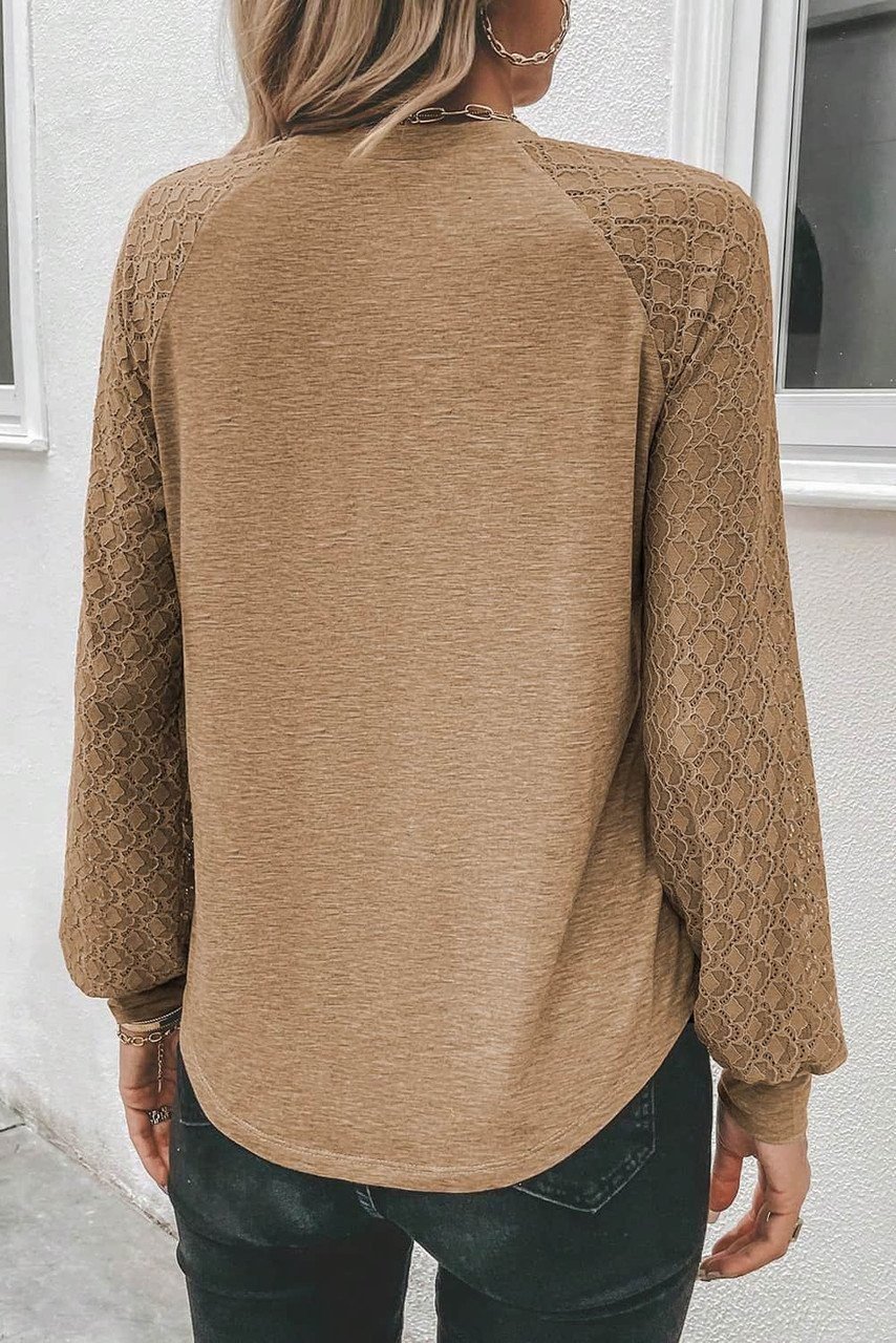- The top features beautiful contrast lace detailing on the raglan sleeves adding a touch of femininity and elegance