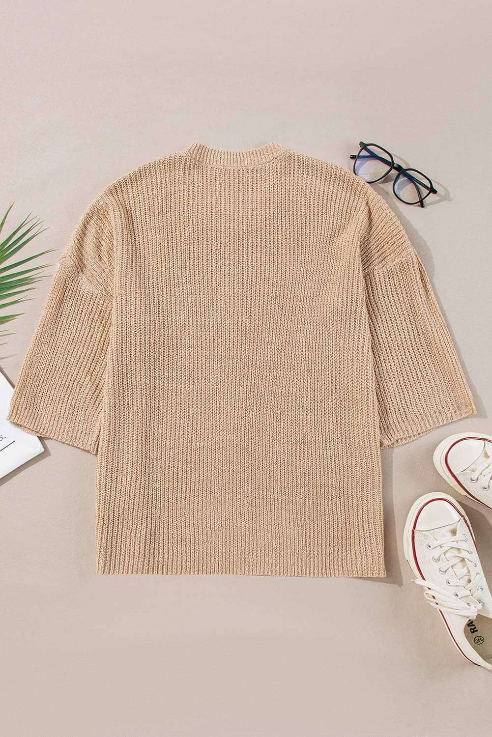 Be the first to review “Light French Beige Contrast Striped 3/4 Sleeve Crew Neck Sweater”