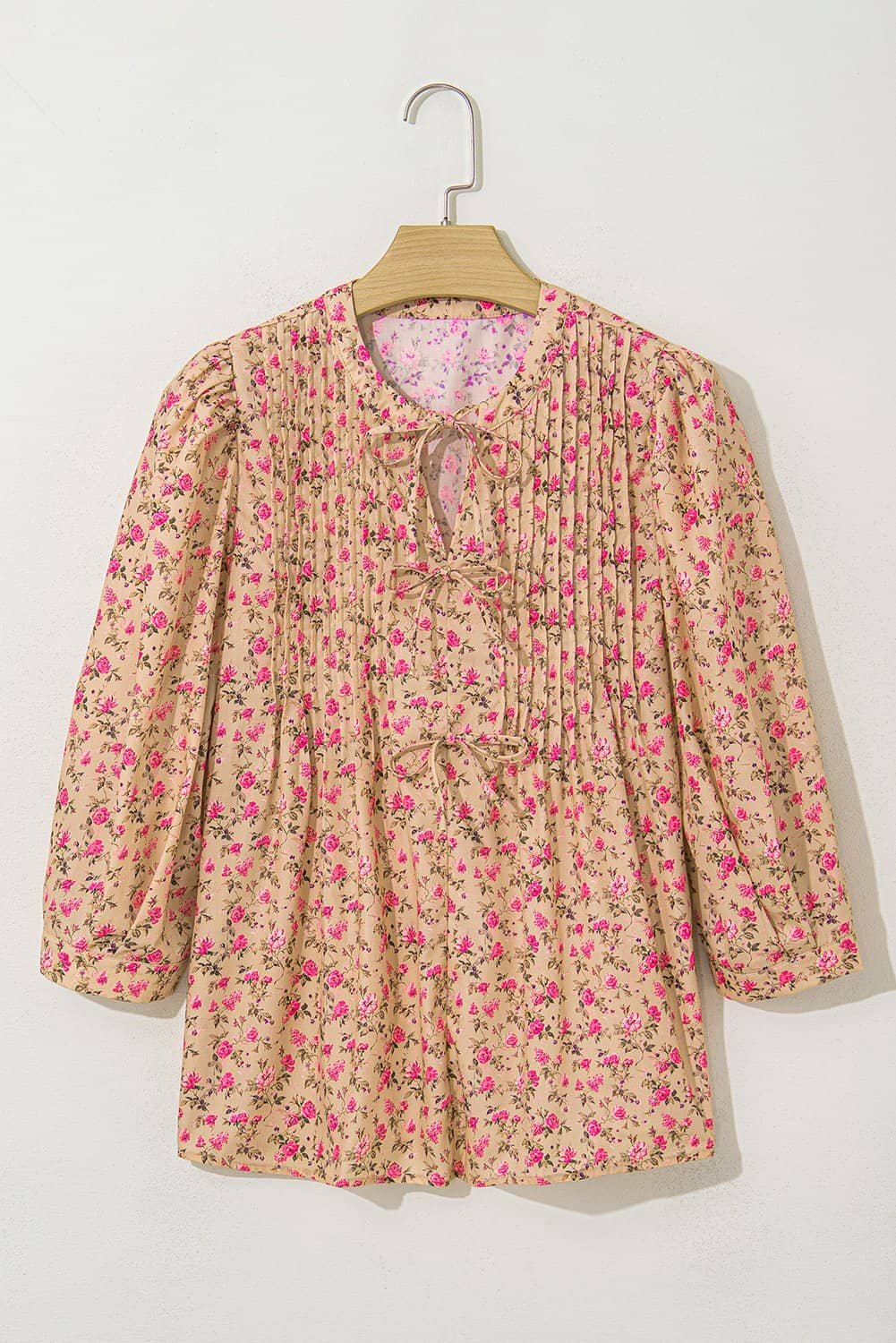 Half puff sleeves make this blouse top more graceful.