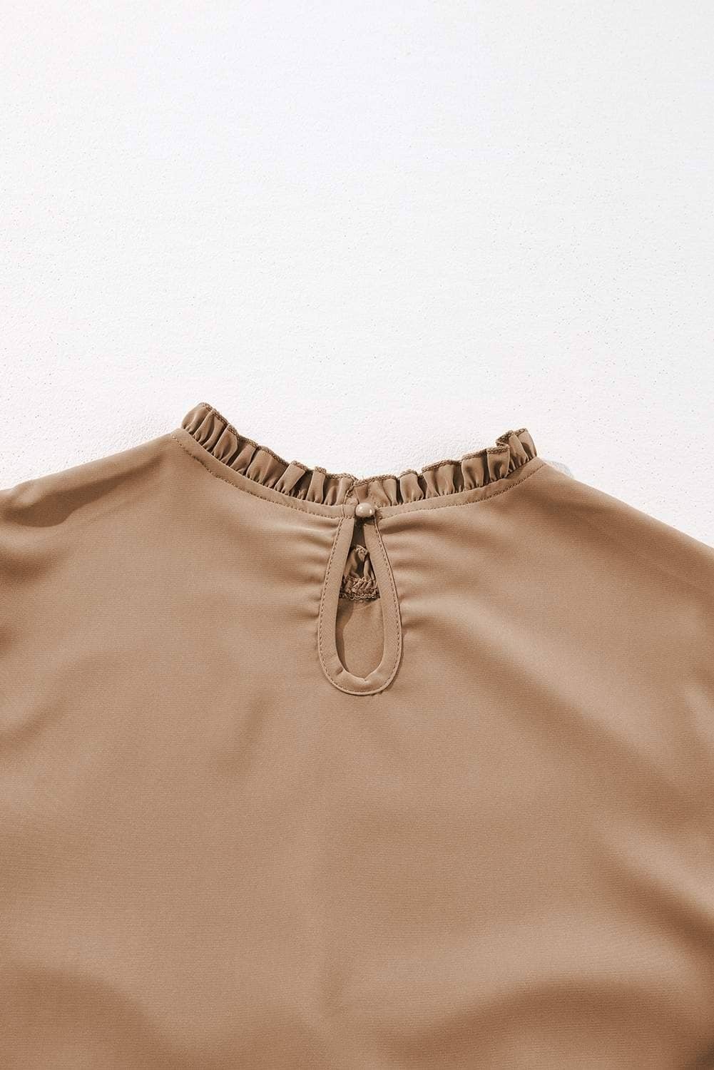 Delicate ruffles on the shoulders bring a romantic and playful detail.