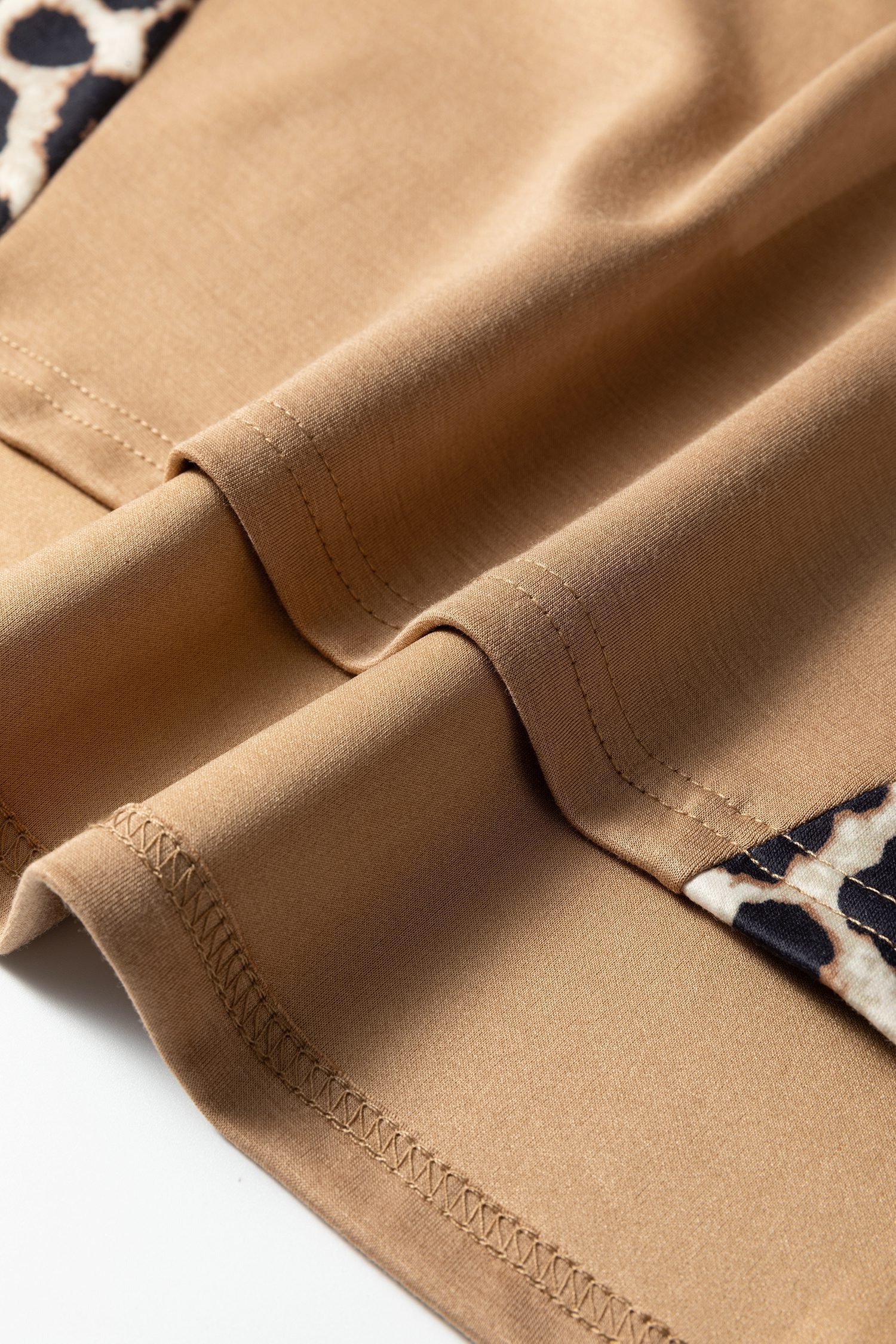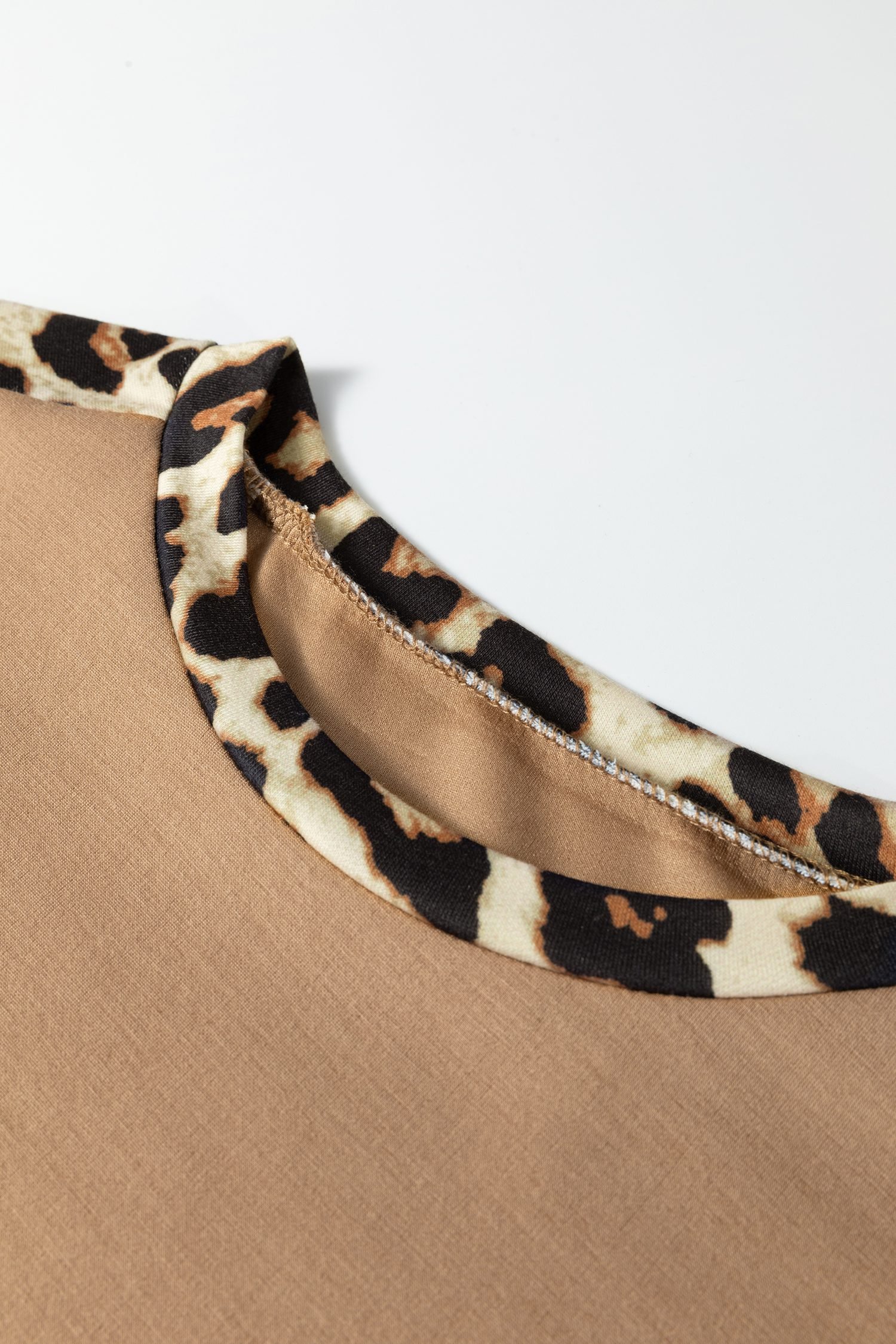 Be the first to review “Light French Beige Leopard Trim Round Neck Loose T Shirt”