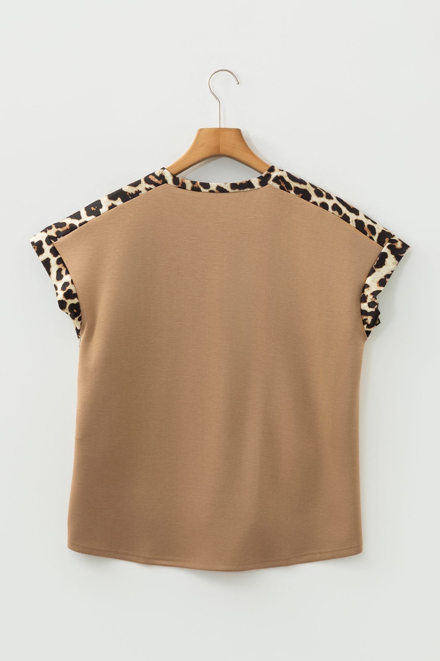• The patchwork leopard print makes this womens casual tee fashionable.
