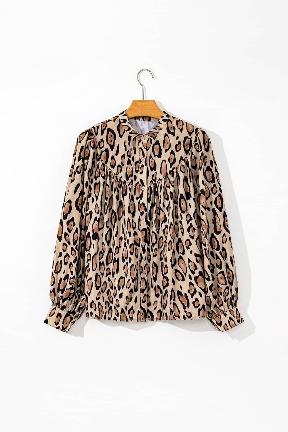 - The shirt features a bold and fashionable leopard print making a strong style statement.