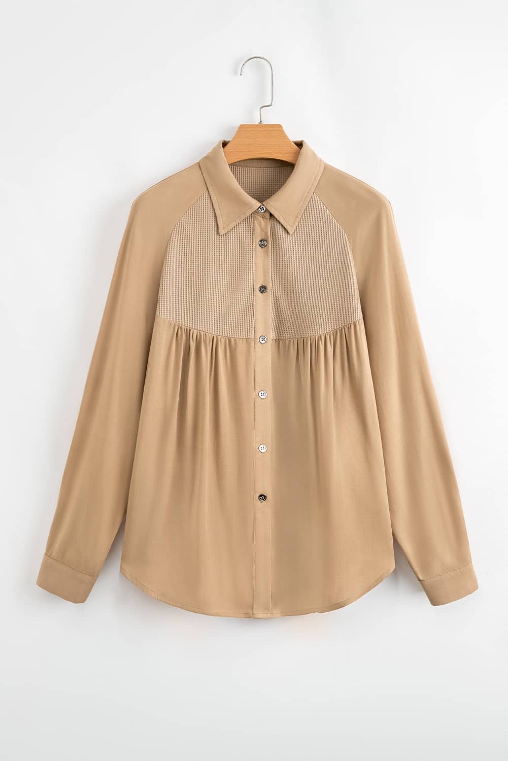 Button-up style allows for versatile styling options.
