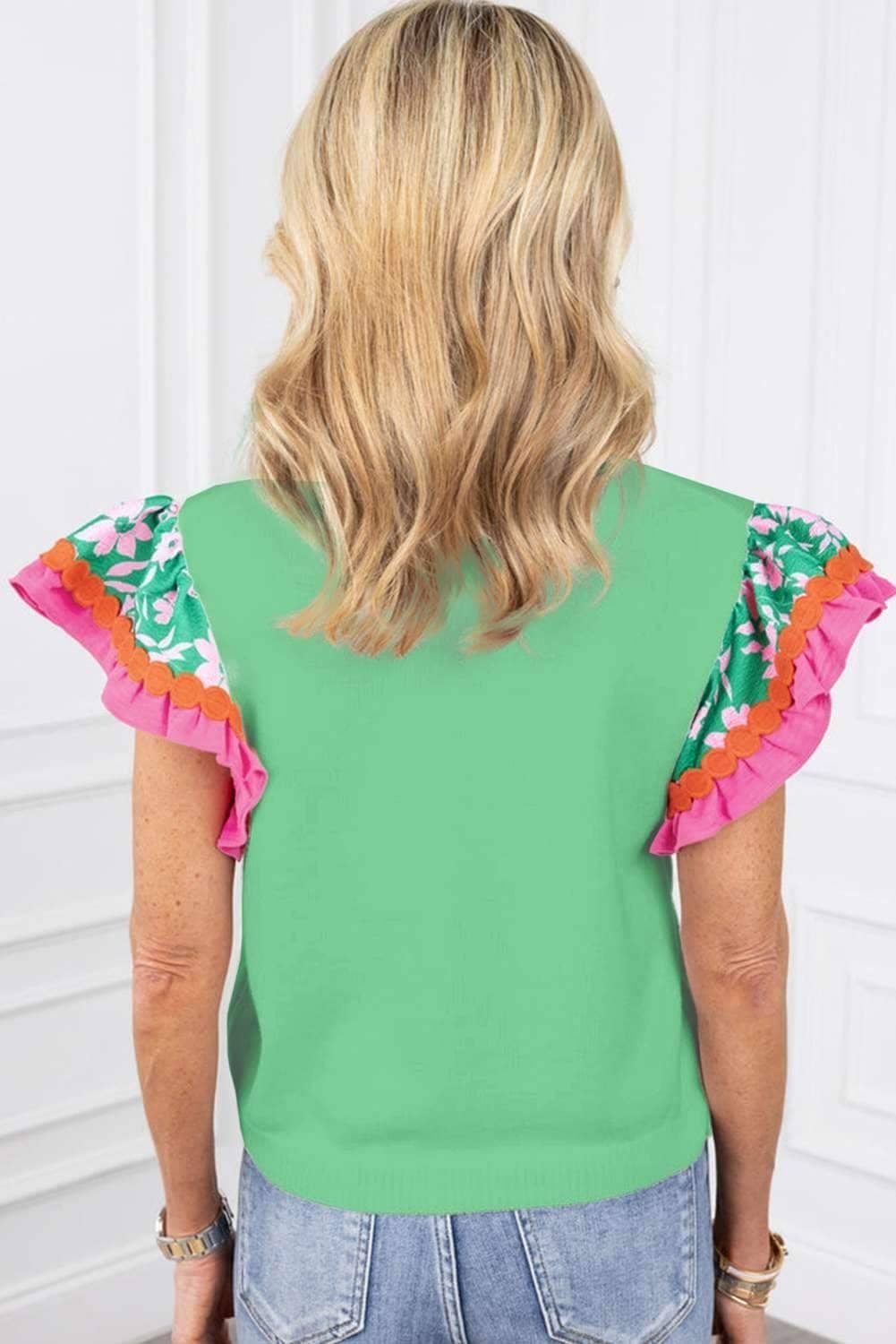 Be the first to review “Light Green Contrast Ricrac Floral Sleeve Top”
