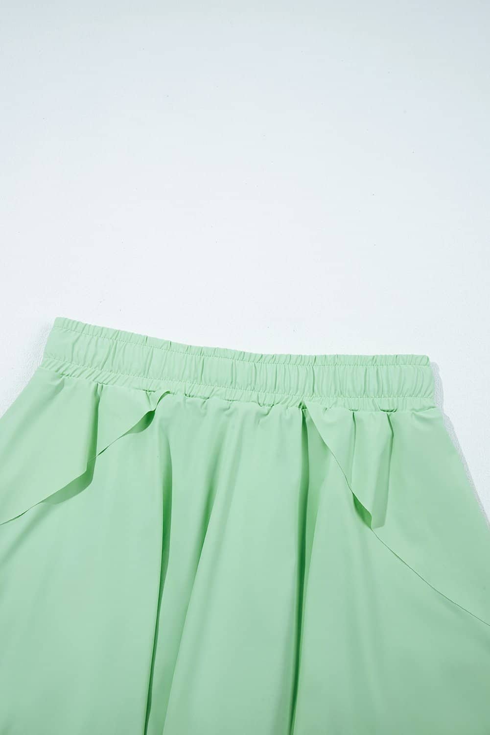 Light Green Drawstring High Waist Lined Tennis Skorts