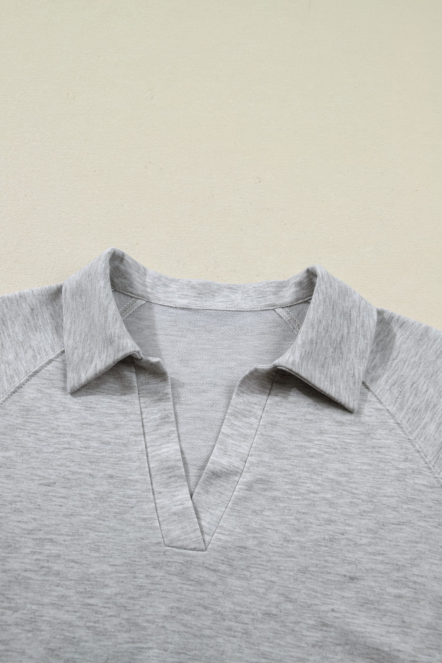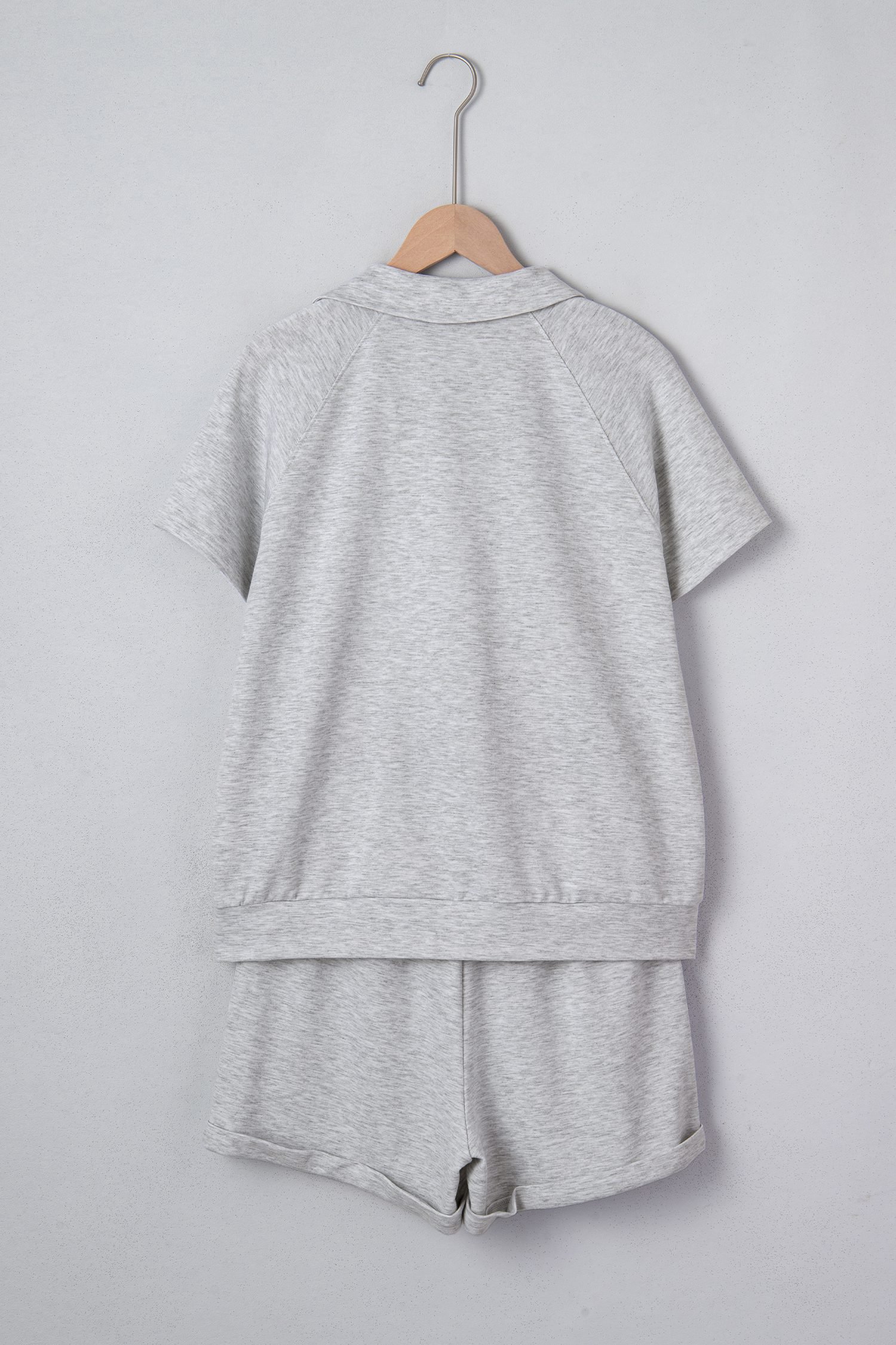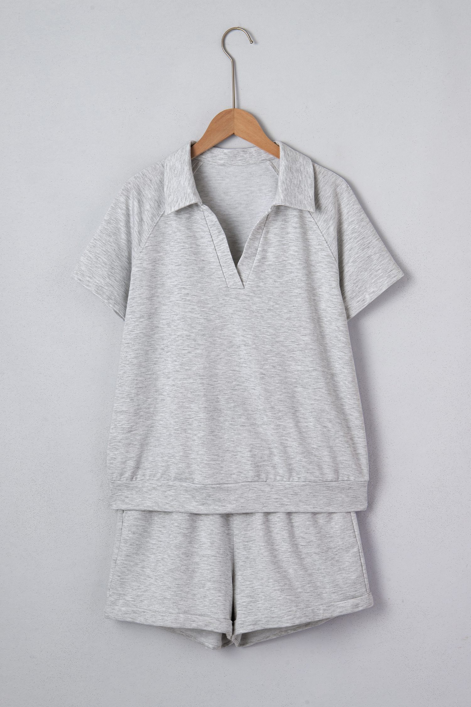 Collared V neck tee set delivers a clean, casual look.