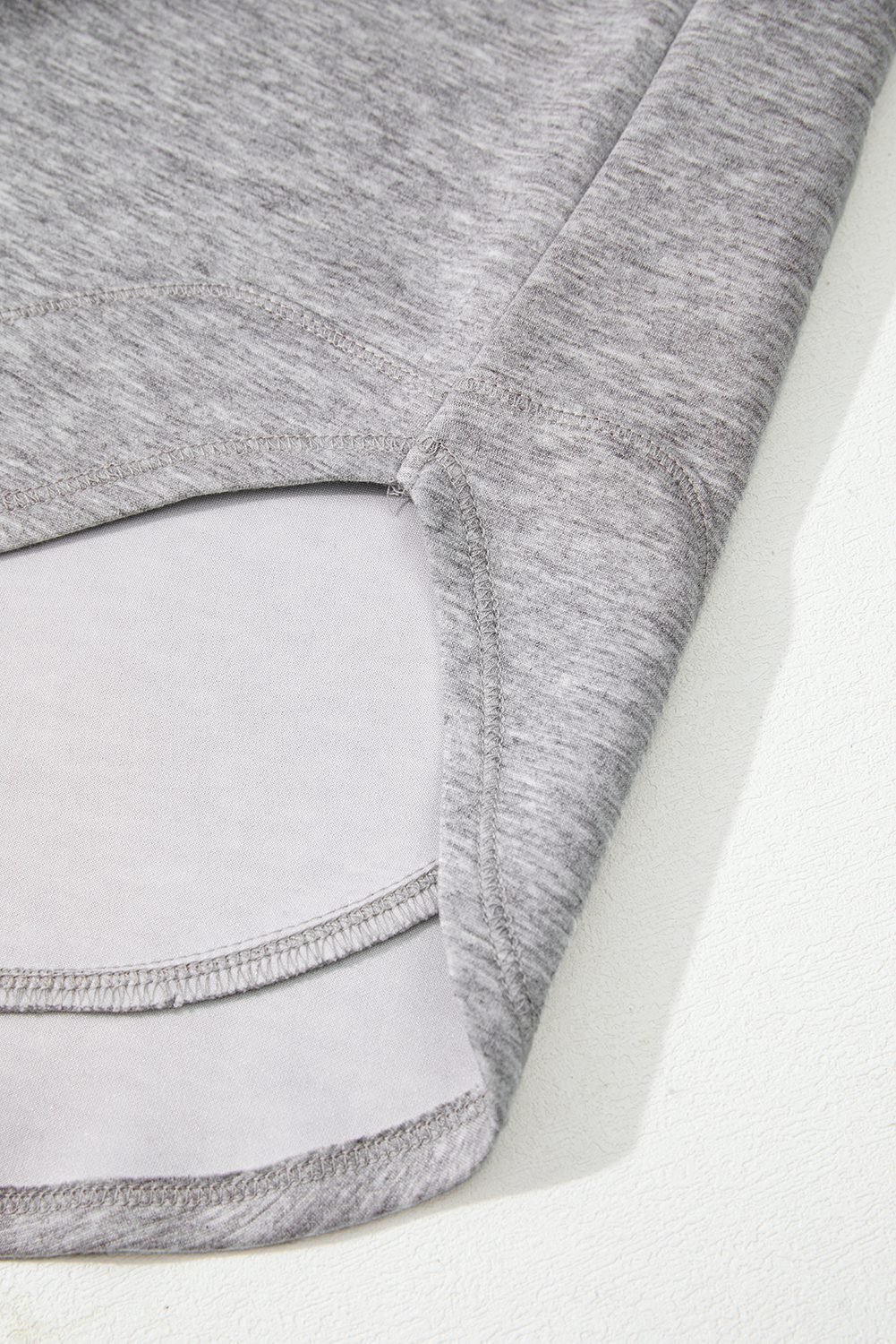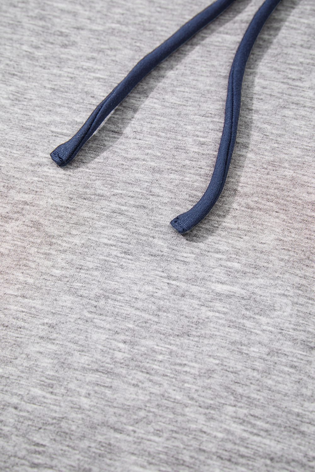 Casual hoodie with side slits and adjustable drawstring at neck.