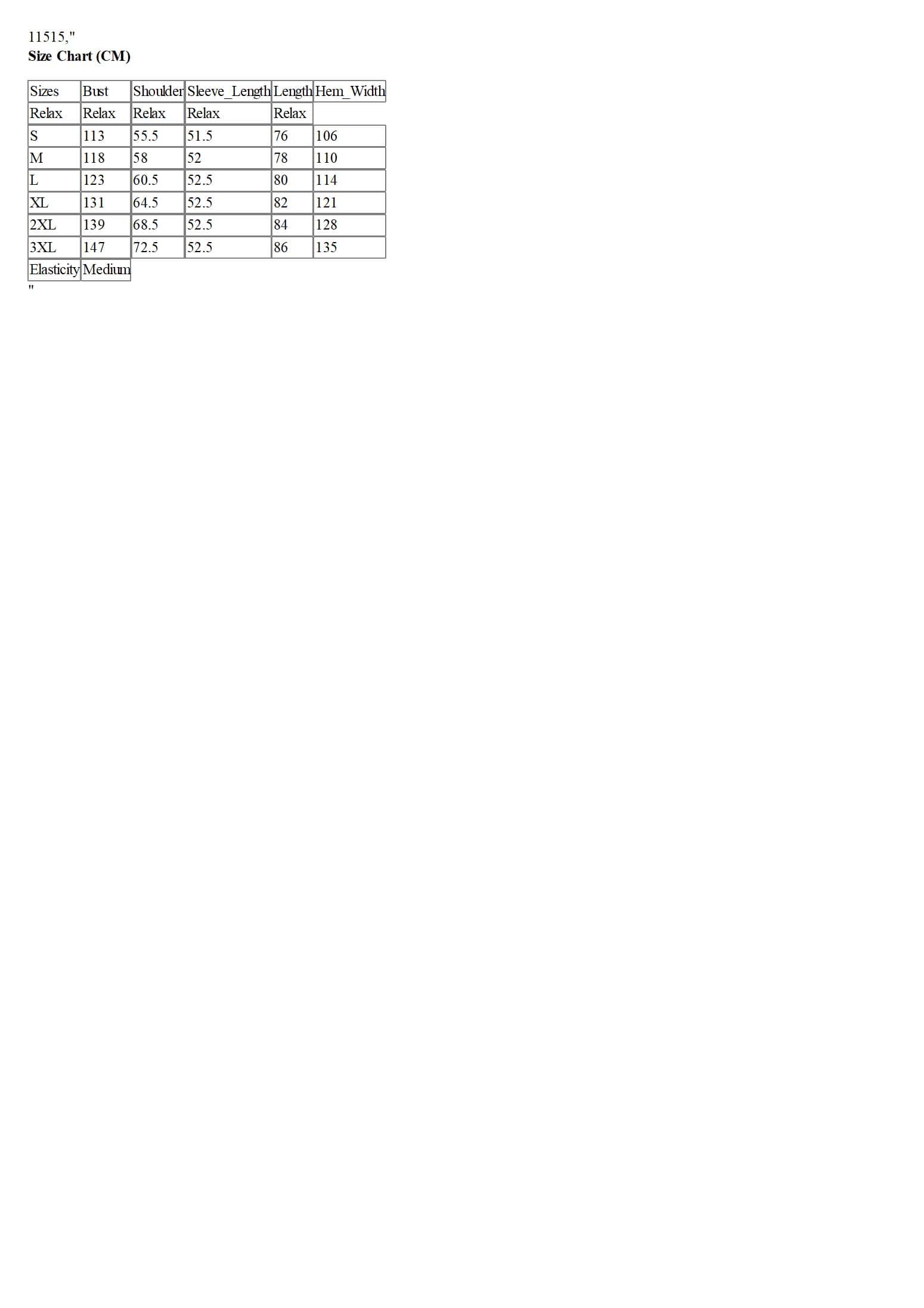 Size Chart (CM)