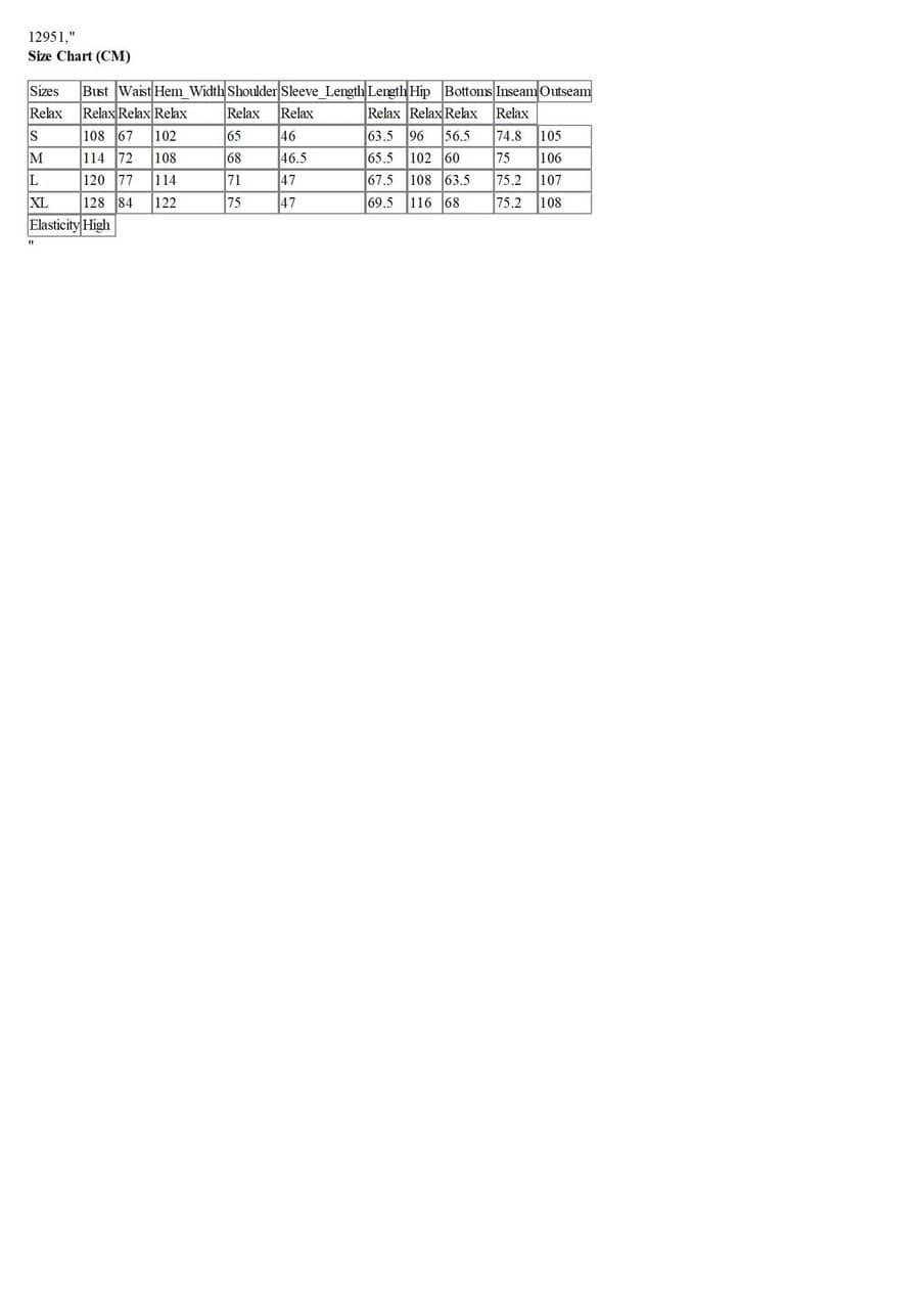 Sizes | Bust | Waist | Hip | Shoulder | Sleeve_Length | Length | Inseam | Bottoms | Hem_Width | Outseam |