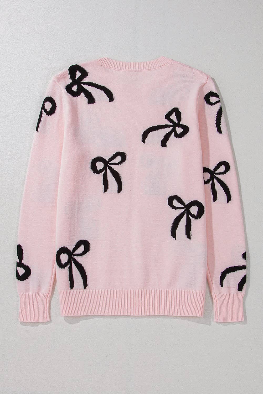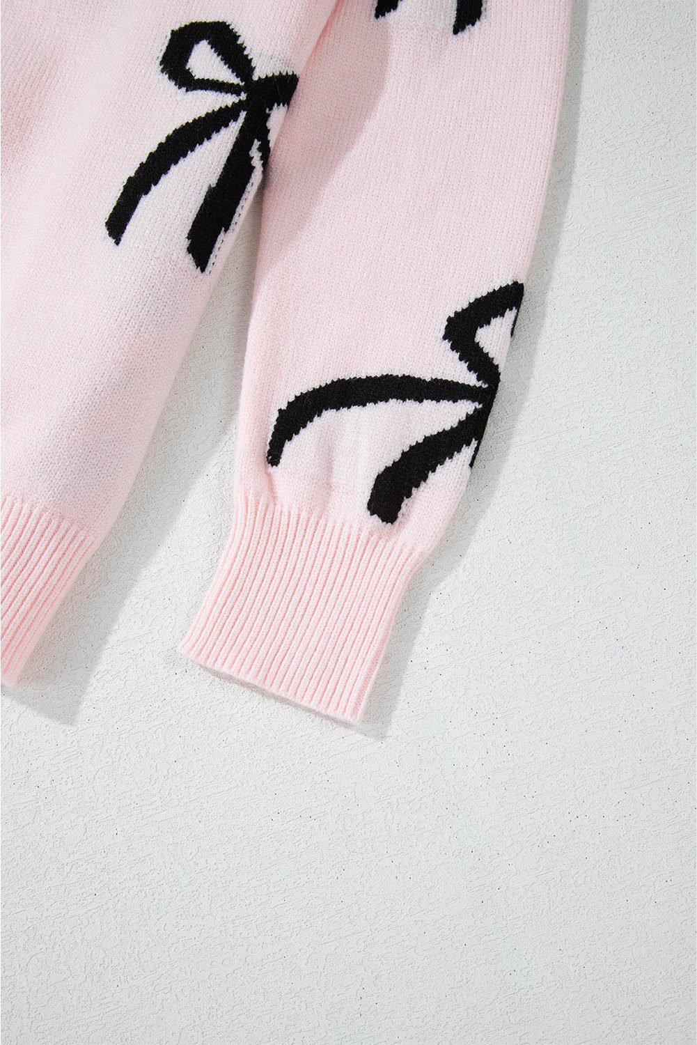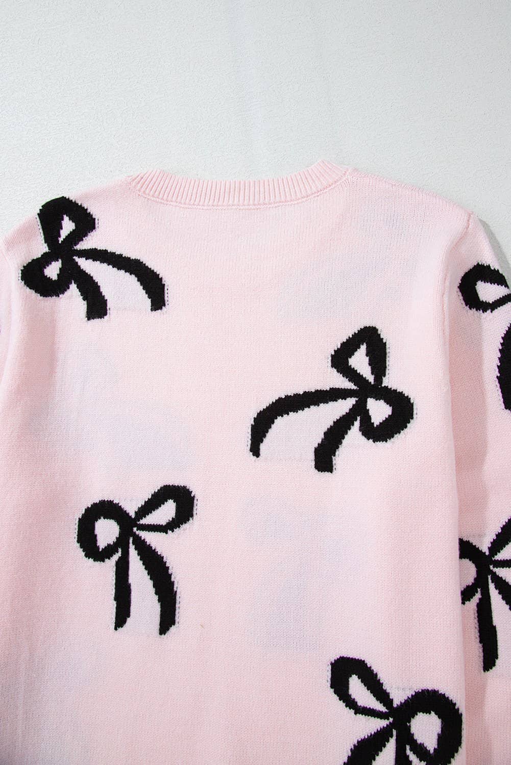 Light Pink Bow Pattern Knitted Loose Fit Sweater