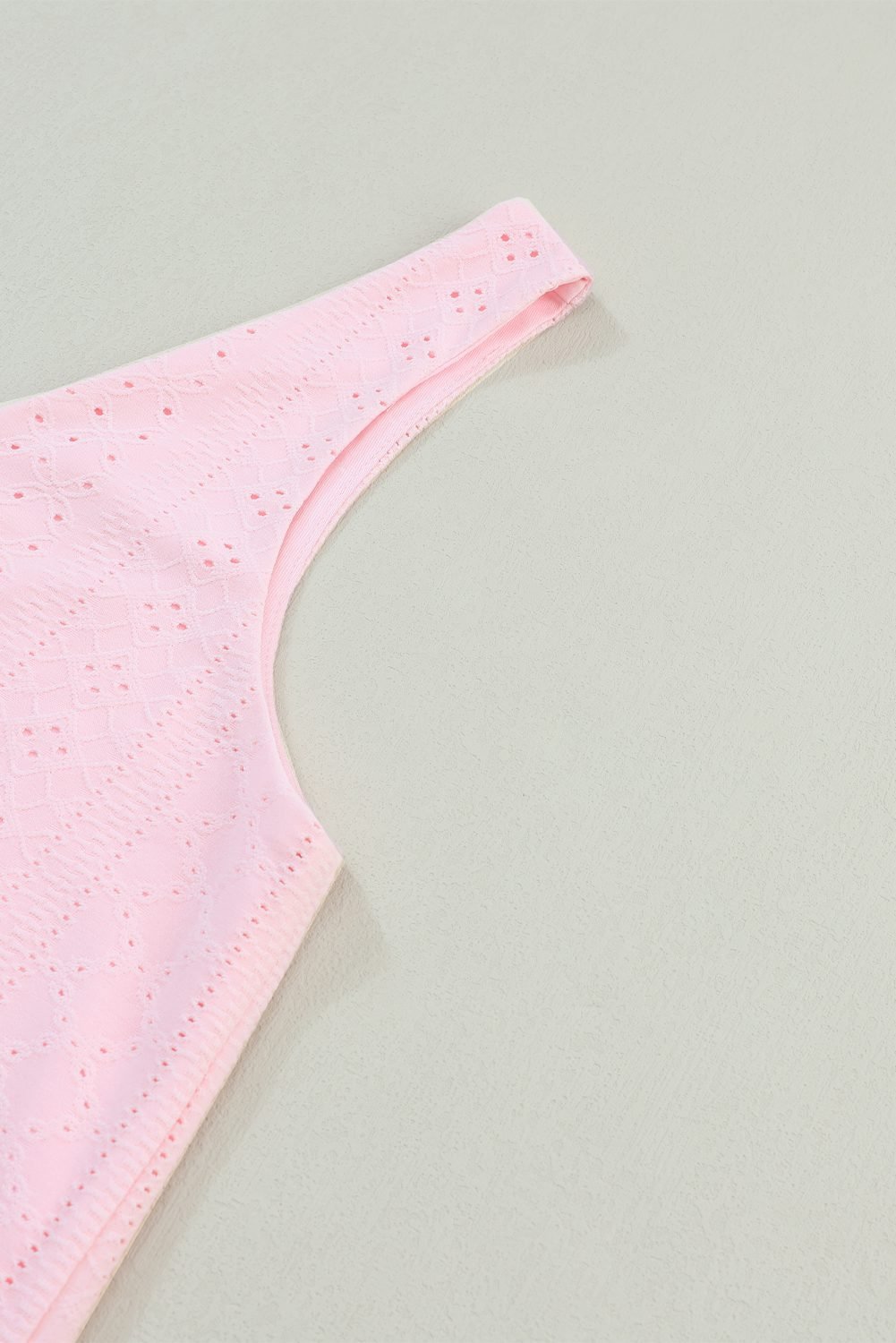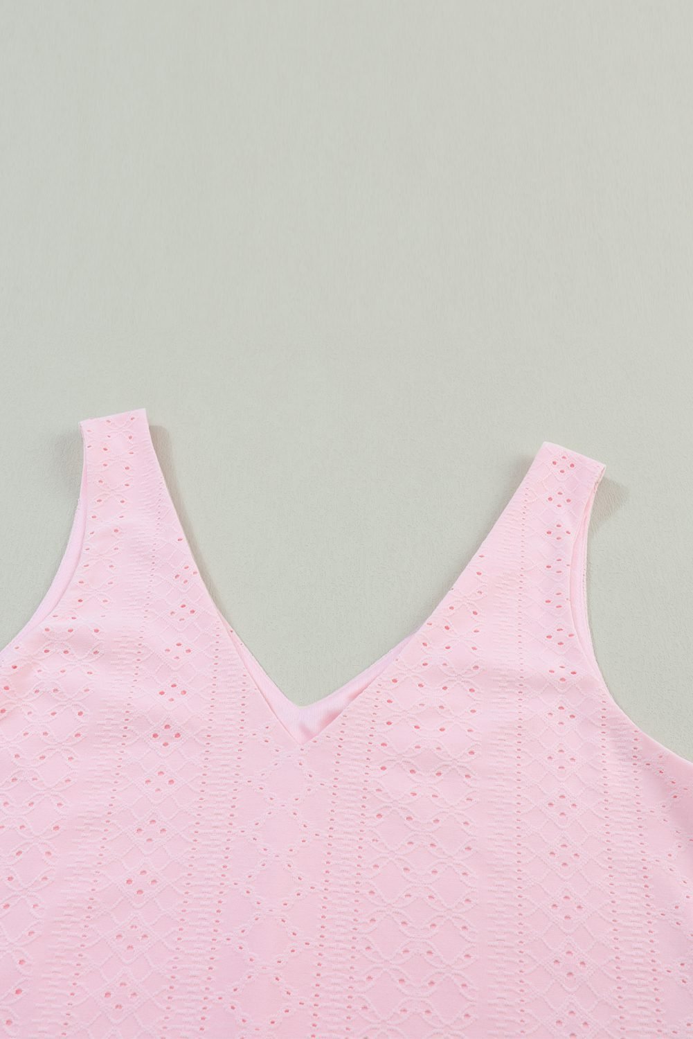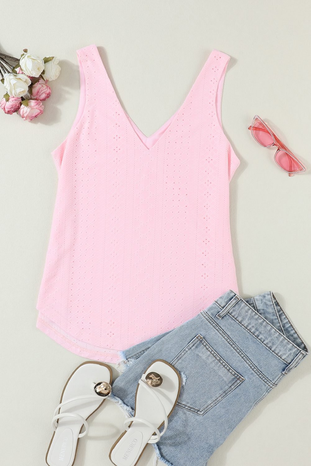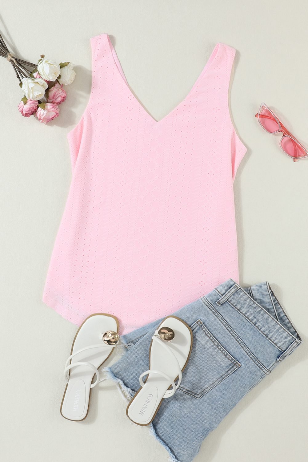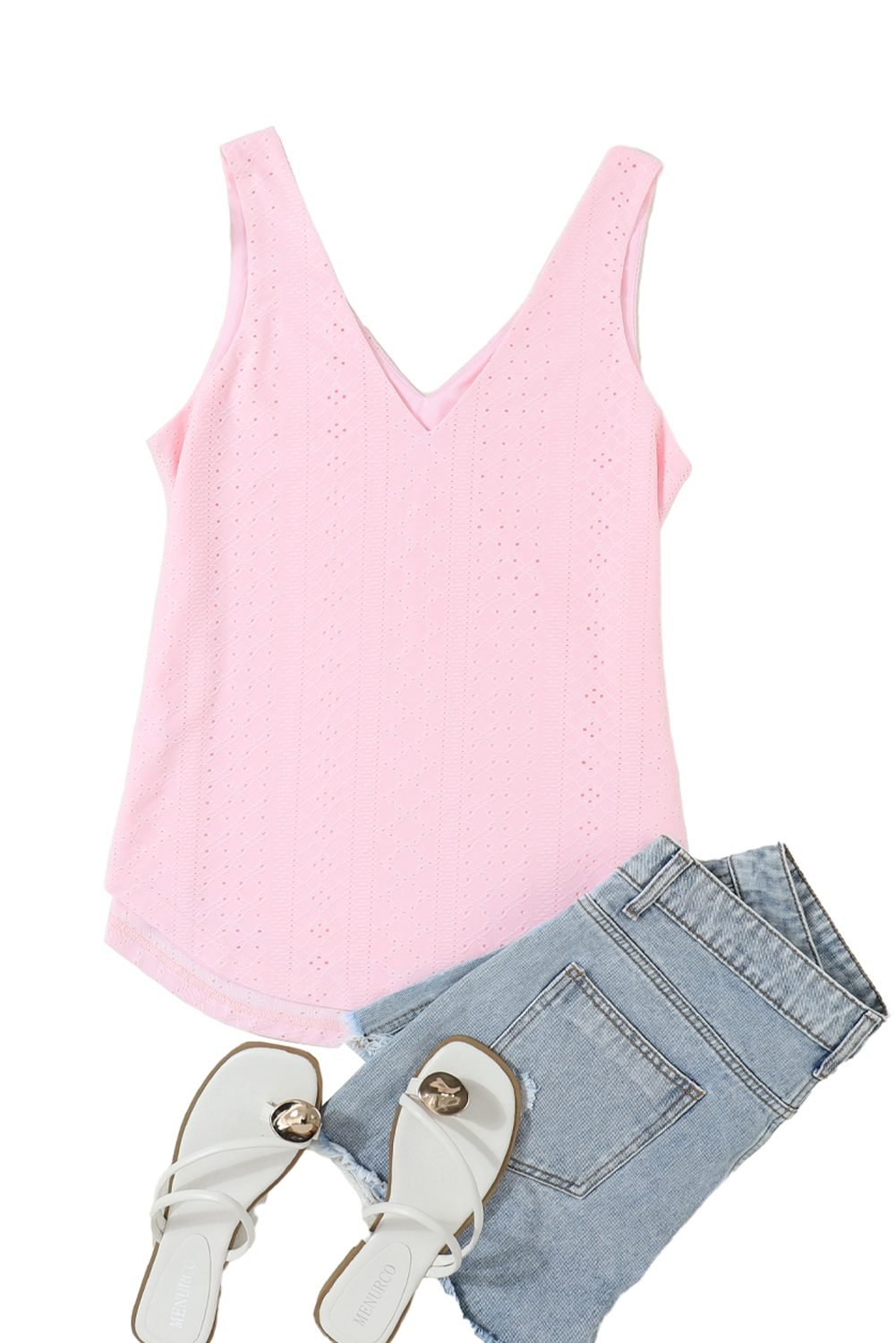 The eyelet knit pattern makes this sleeveless top delicate and alluring.