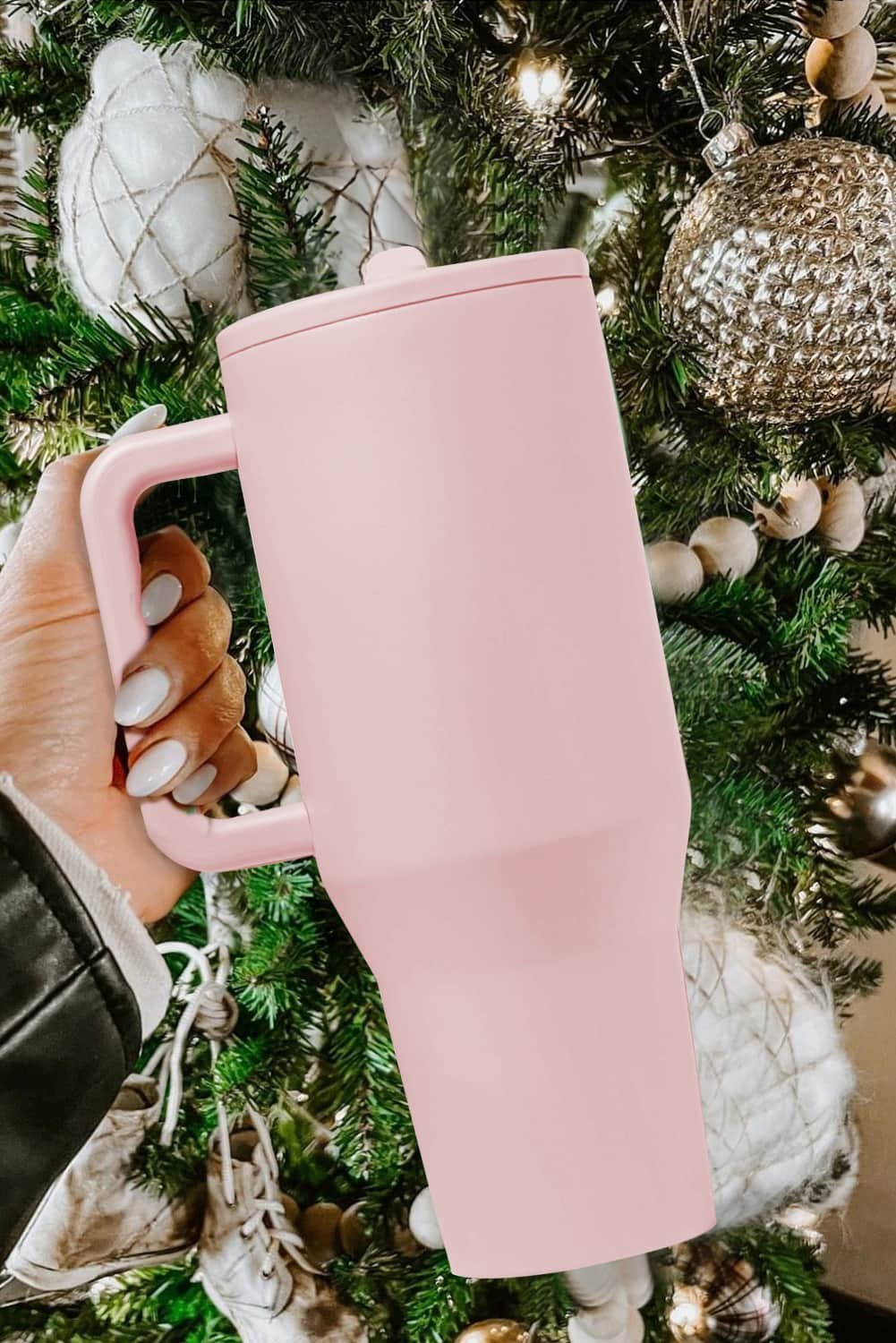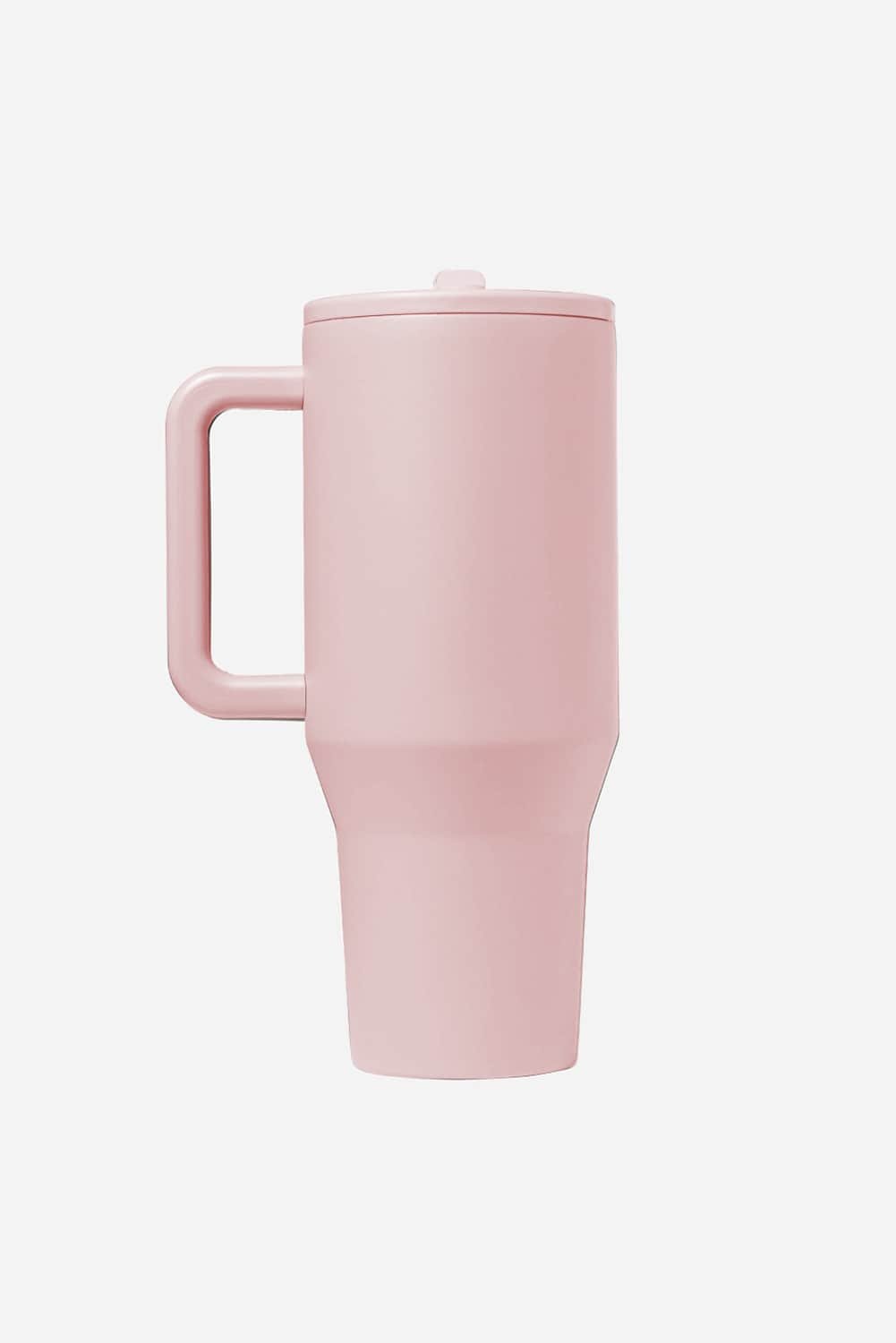 Light Pink Frosted Stainless Handle Large Vacuum Cup With Straw 40Oz