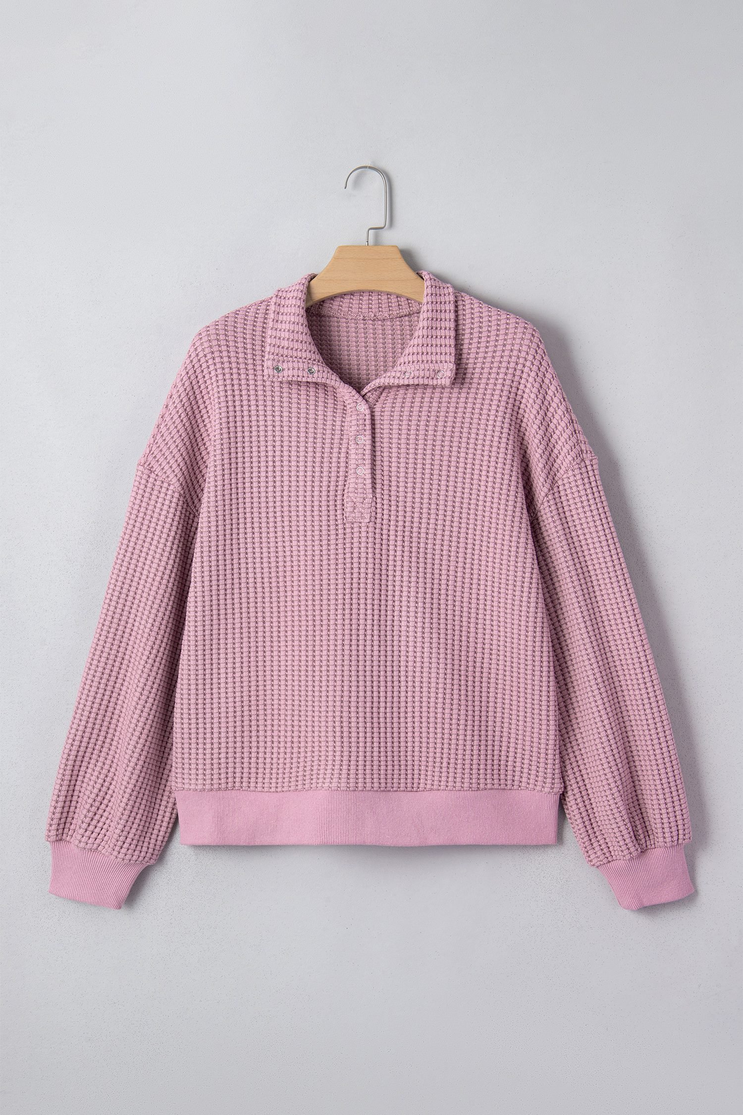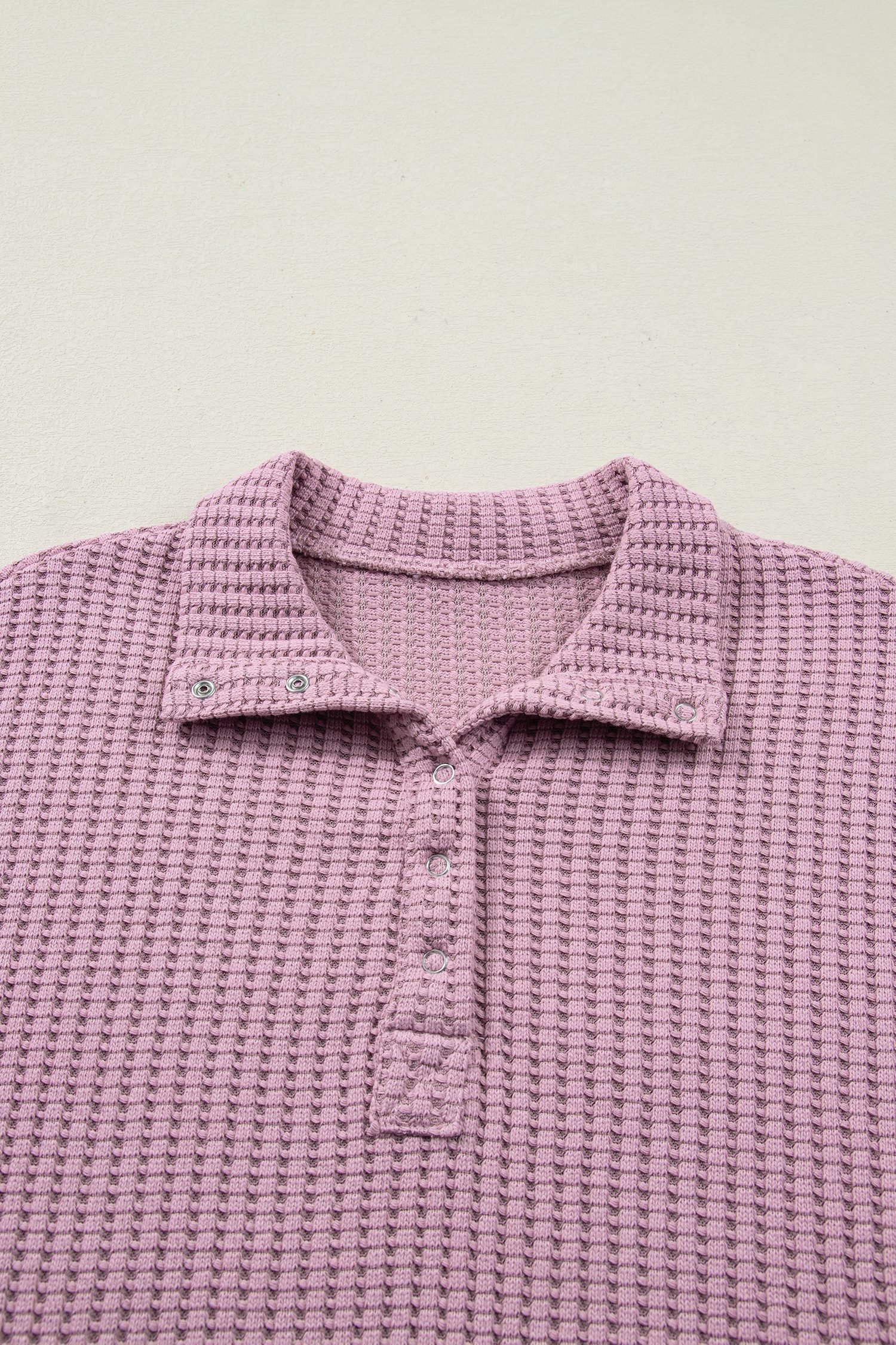 Be the first to review “Light Pink Solid Color Textured Snap Button Collared Baggy Top”