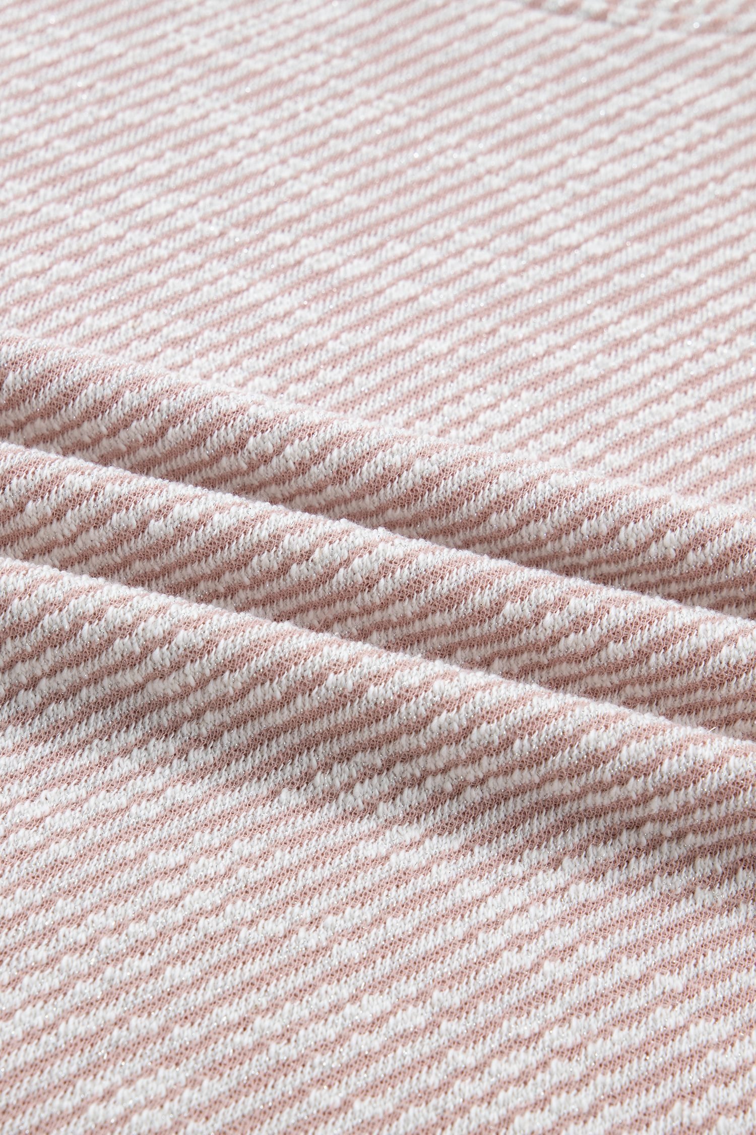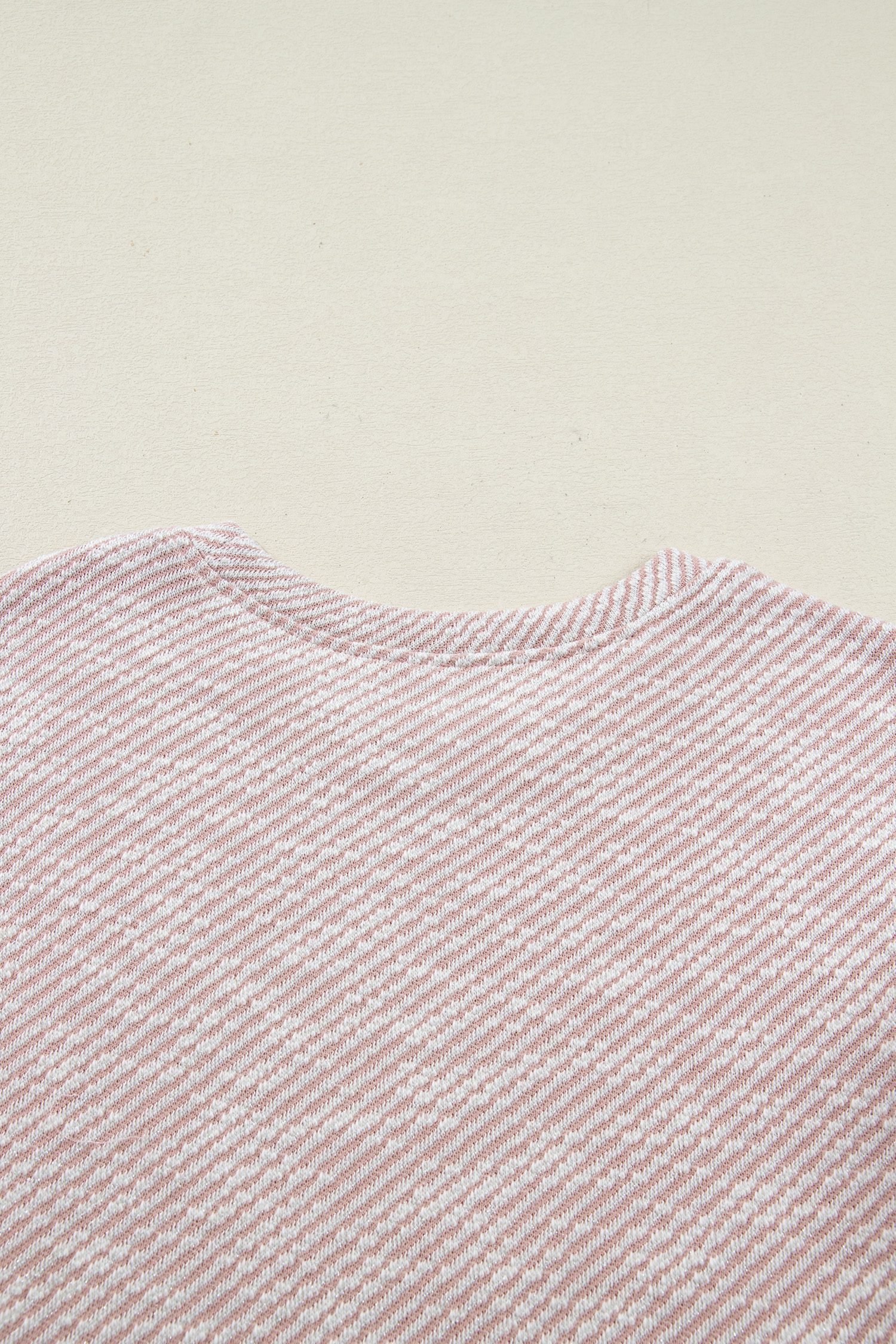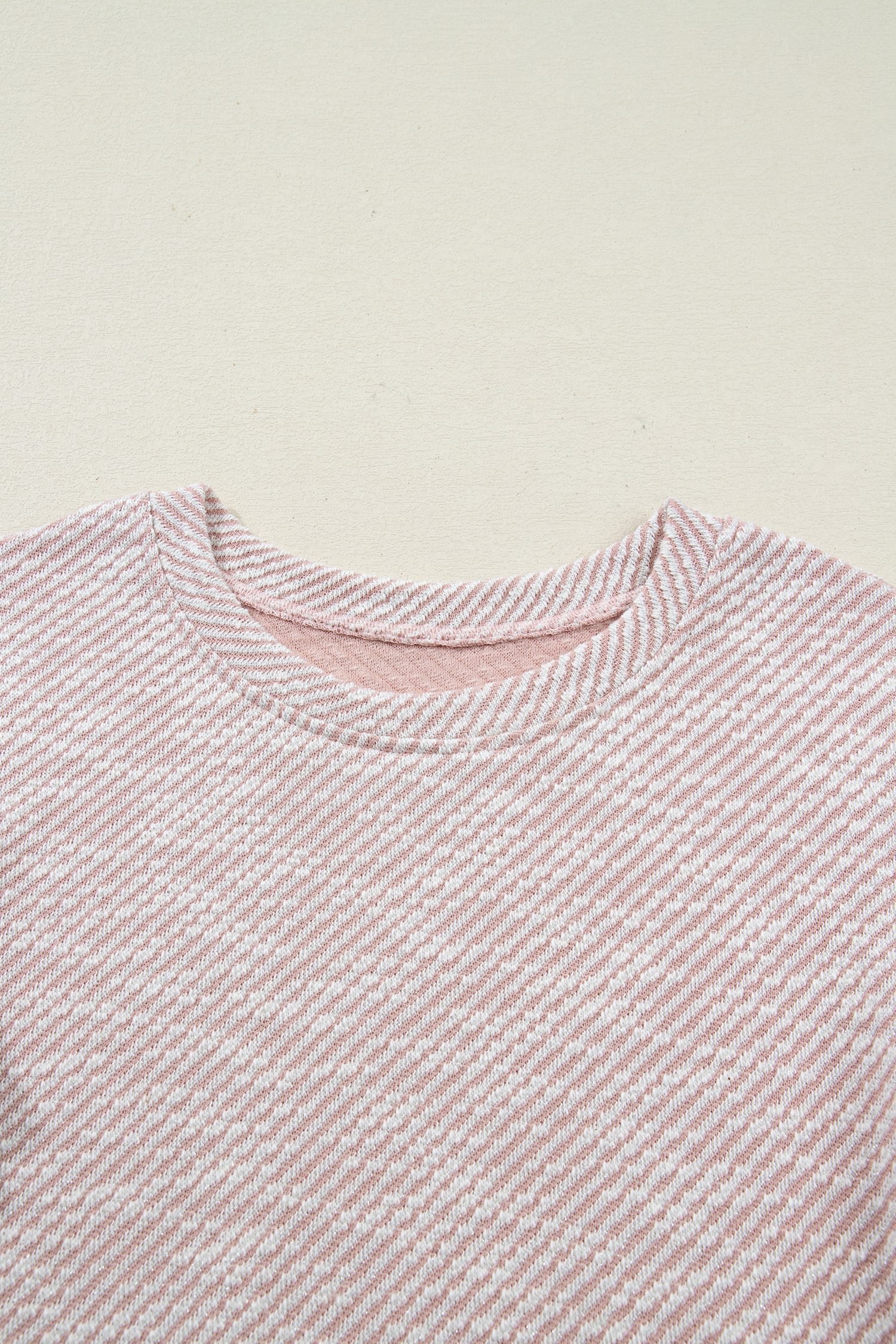 This round neck top has a pair of beautiful lace trim ruffled sleeves.