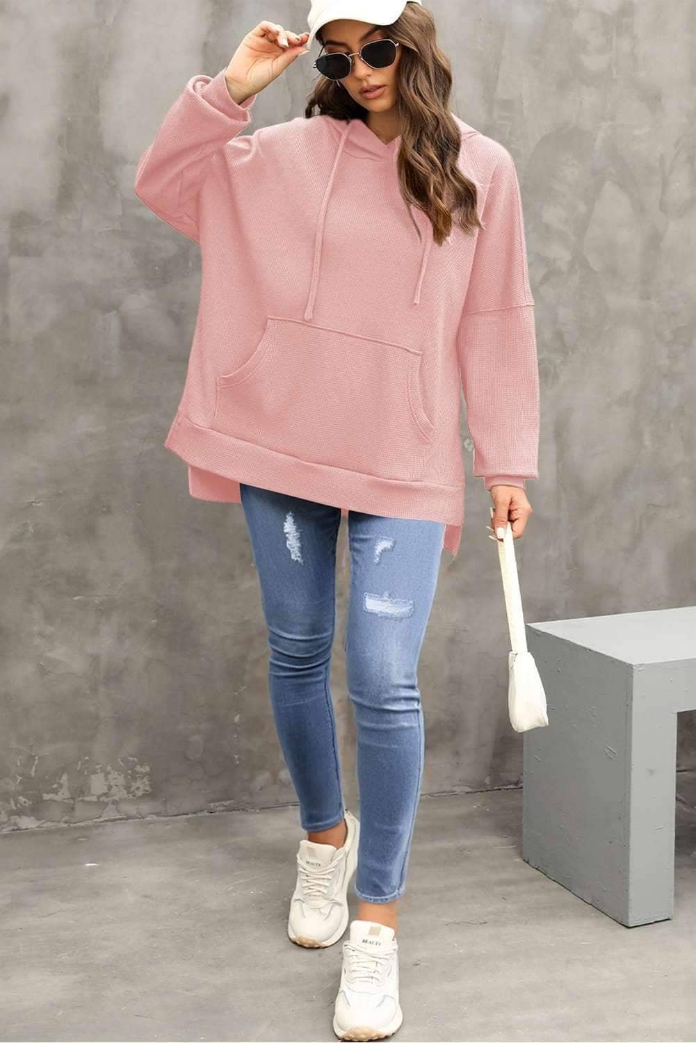 Be the first to review “Light Pink Waffle Knit Fleece Lined High Low Oversized Hoodie”