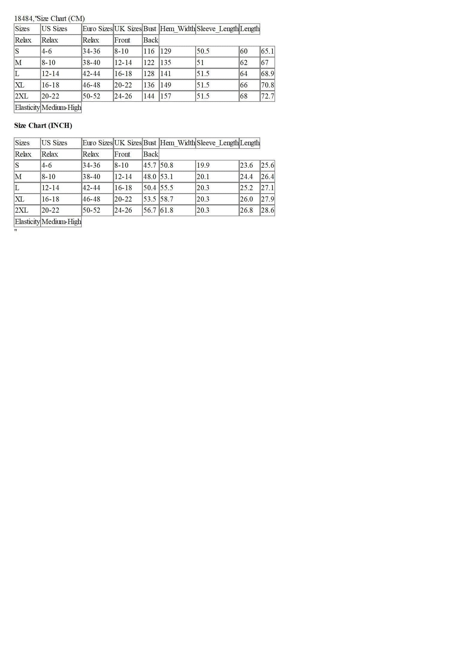 Size Chart (CM)