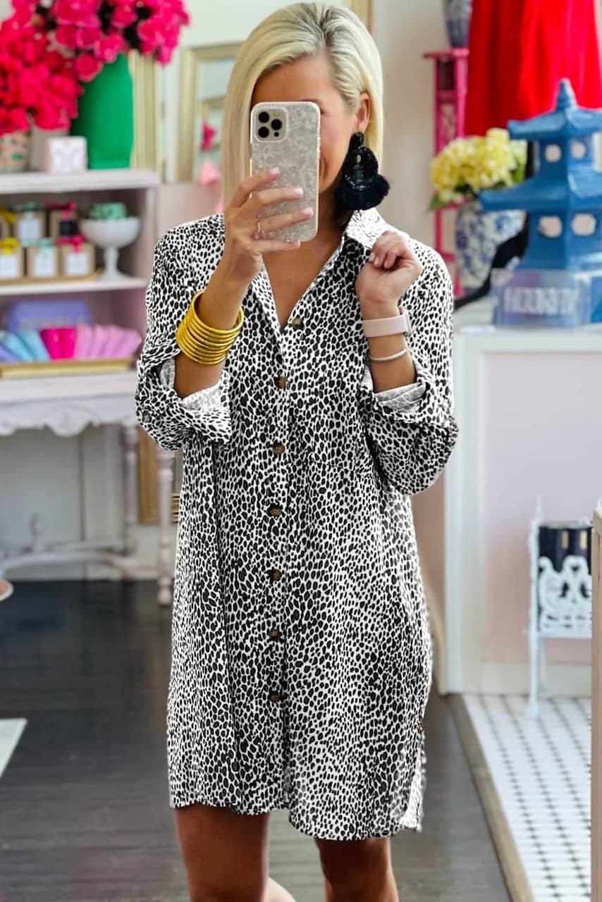 Be the first to review “Long Sleeve Leopard Animal Print Shirt Dress”