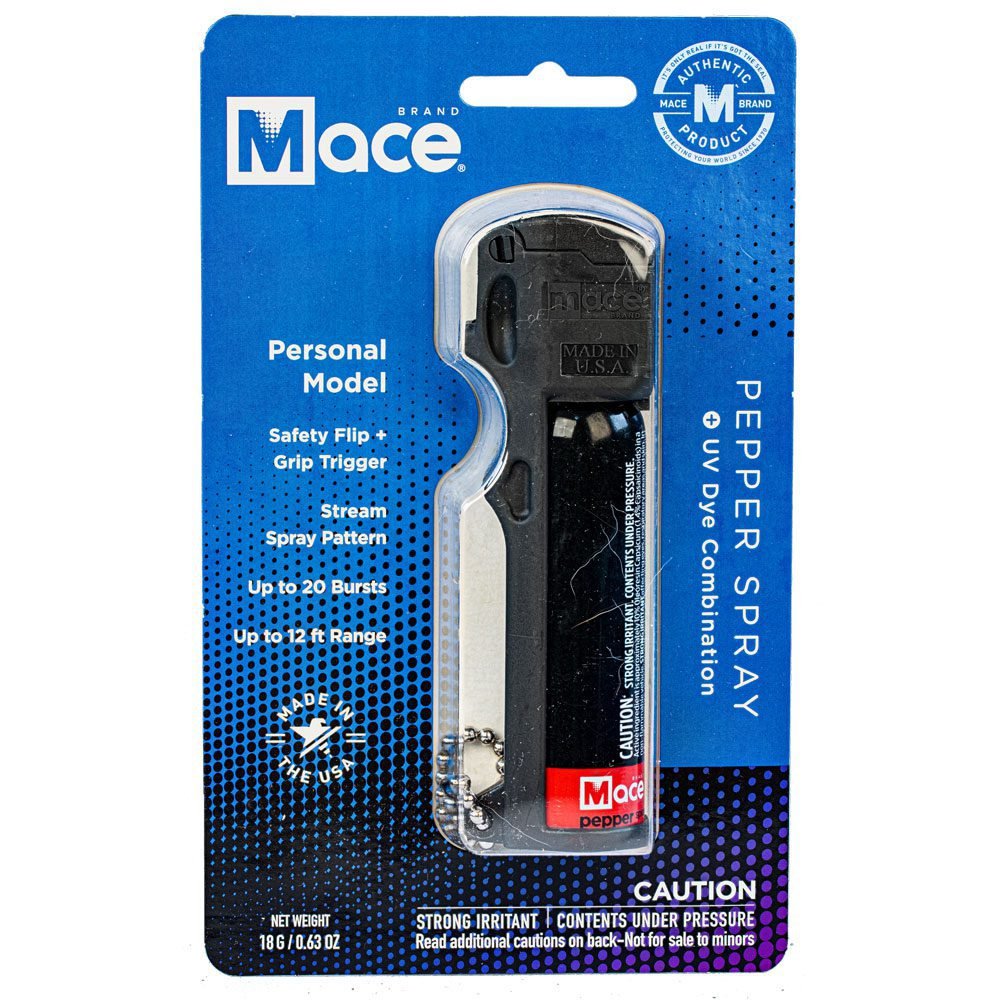 The Mace Personal Model pepper spray?is a powerful formulation of OC pepper spray that will quickly shut the eyes, and induce coughing, choking and a burning sensation. This 18 gram unit contains an approximate 20 stream pattern bursts with a reach of 12 feet. OC spray has a UV Detection dye component that helps in criminal investigations as it leaves a visible residue under a black light.? The accessible and simple-to-use pepper spray eliminates the worries about self protection. Connect it to your keys via the included keychain so it can be accessed quickly and easily. This Person Pepper Spray is positioned when you need it. The finger-grip layout assists with pinpoint accuracy when targeting. Just place your thumb under the safety cap that flips open, then press down on the red actuator button to spray. Thanks to the reliable flip-top safety cap, there’s no need to worry about accidental misfires. This item is suitable for any lifestyle. Perfect for outdoor activities like jogging, hiking, or just going about your daily activities, and its small size means it can be easily carried in pockets, purses, or bags. Using the handy keychain, it can also be attached to keychains serving as an effective and user-friendly protective solution. Made in the USA Features: – Weight: 18 Grams / 0.63oz – Dimensions: 4 ?? x 1 ?? – Keychain included – UV Dye – Flip-top safety cap to prevent accidental discharge – Finger-grip design for optimal targeting accuracy