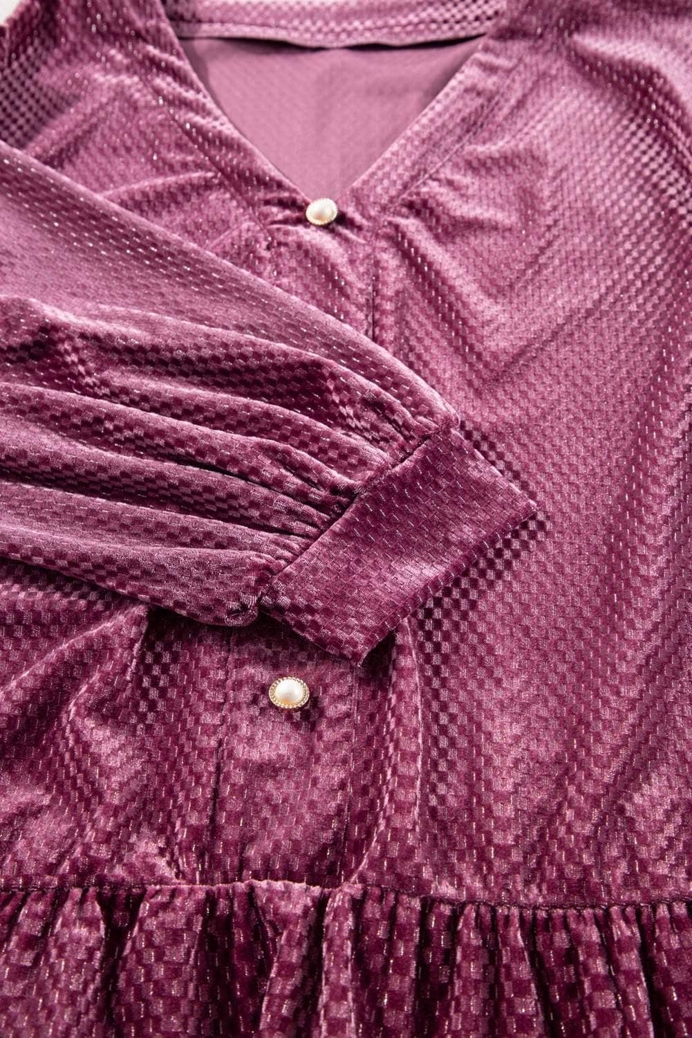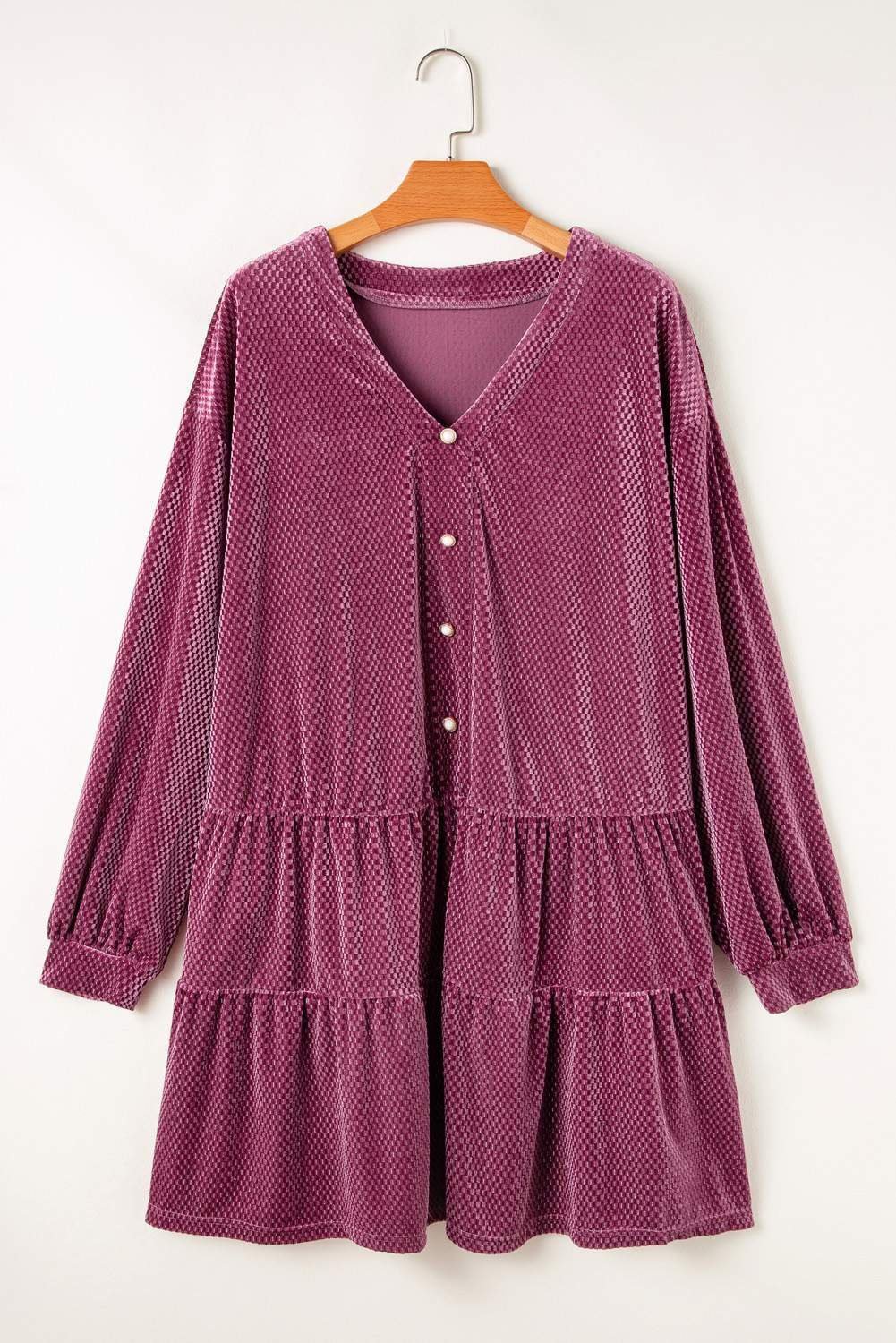 Chic V-neckline with buttoned detailing for a sophisticated touch.